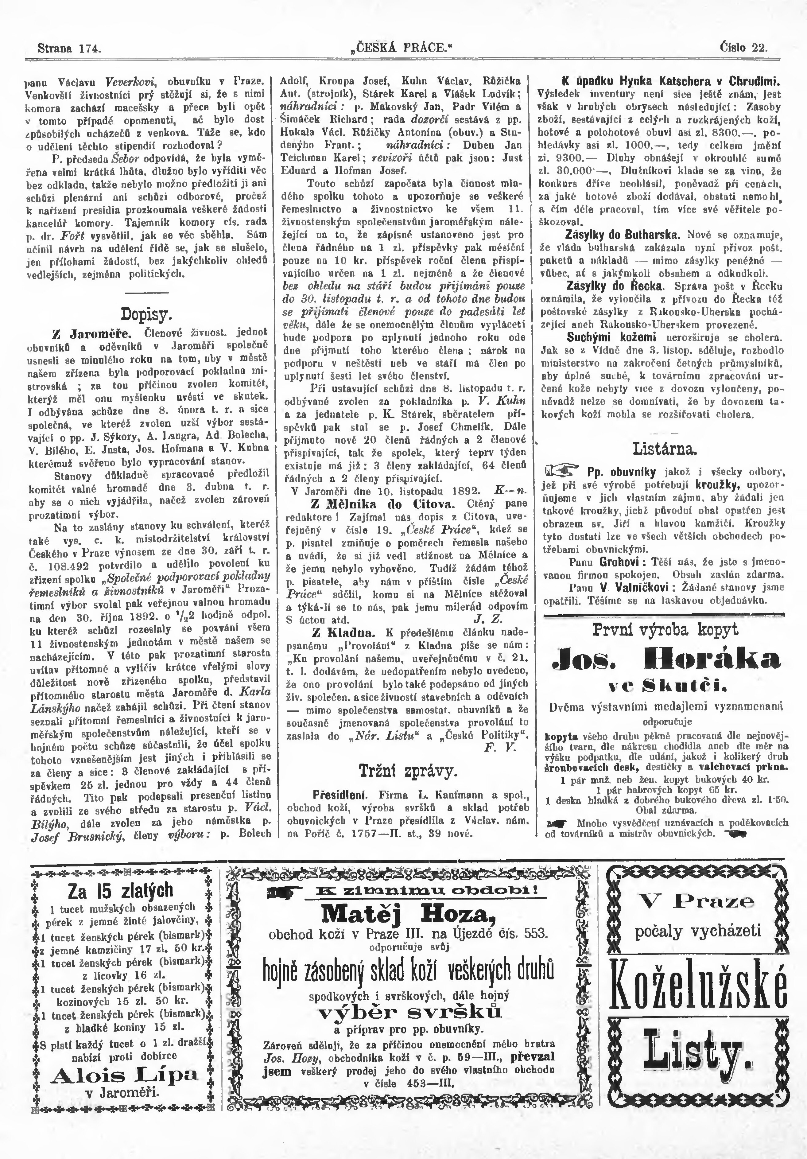 * Datum vydání výtisku: 15.11.1892 Číslo výtisku: 22