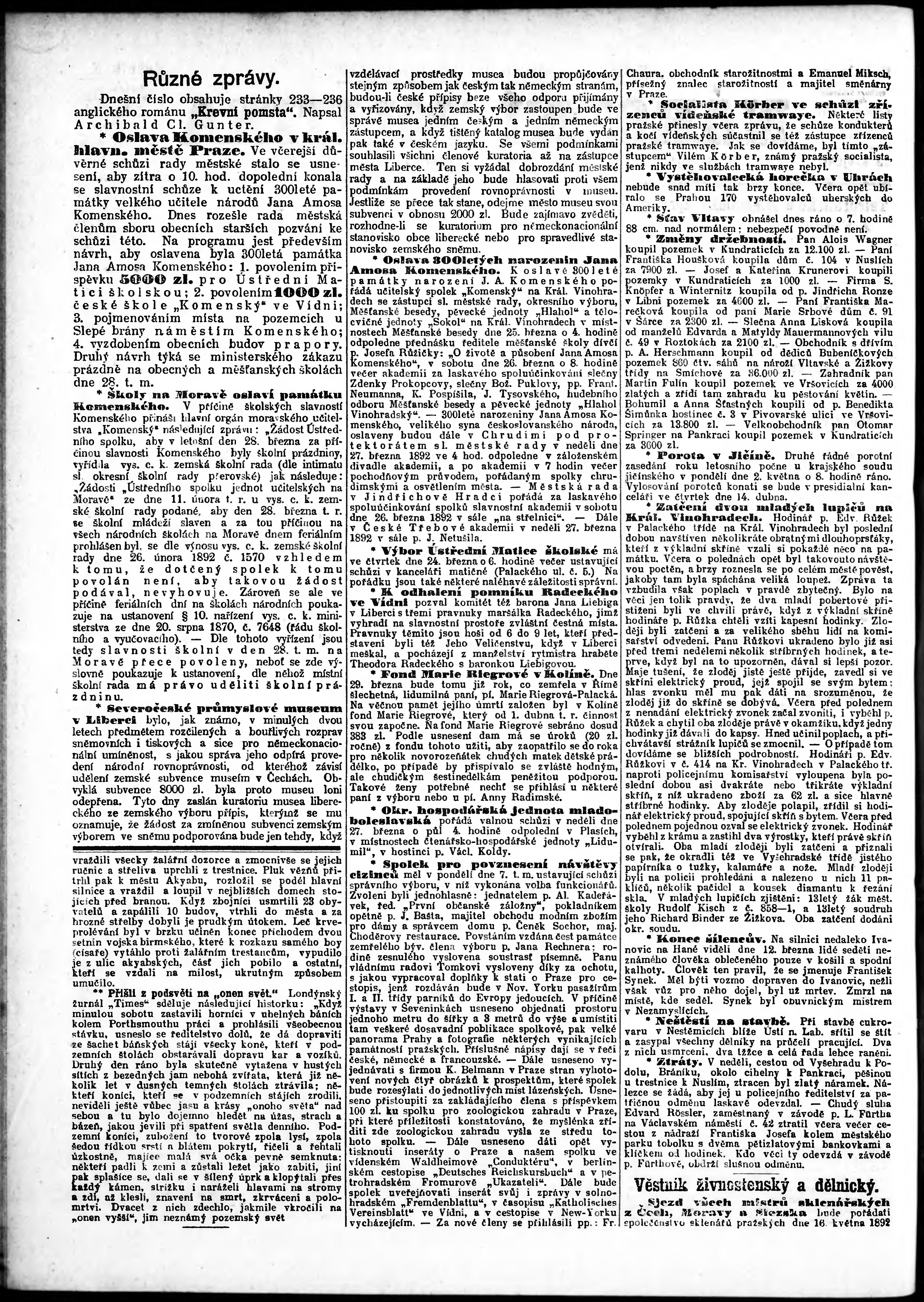 * Datum vydání výtisku: 23.3.1892 Číslo výtisku: 83 Poznámky k výtisku: odpolední vydání;
