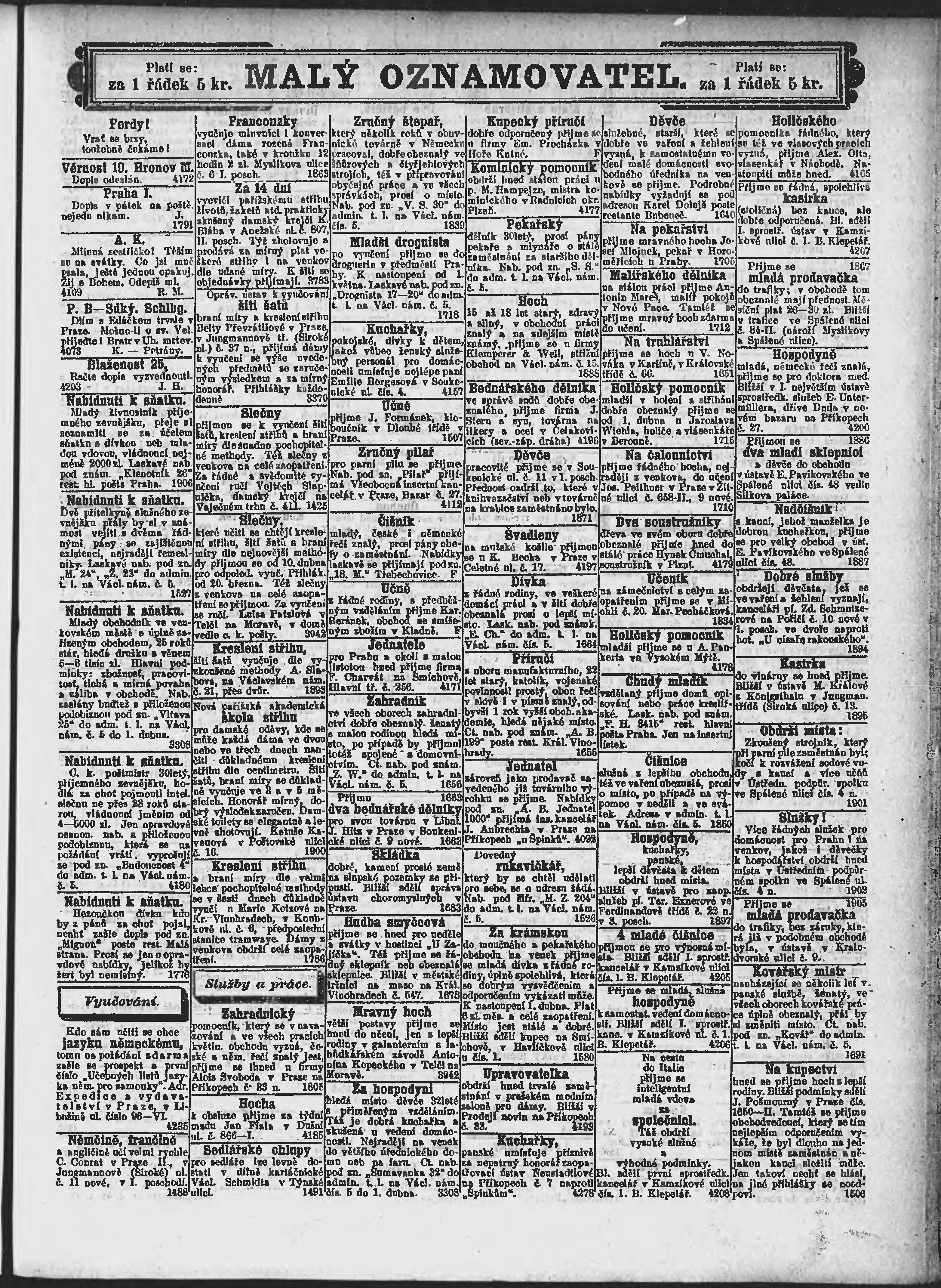 * Datum vydání výtisku: 24.3.1892 Číslo výtisku: 84 Poznámky k výtisku: ranní vydání;
