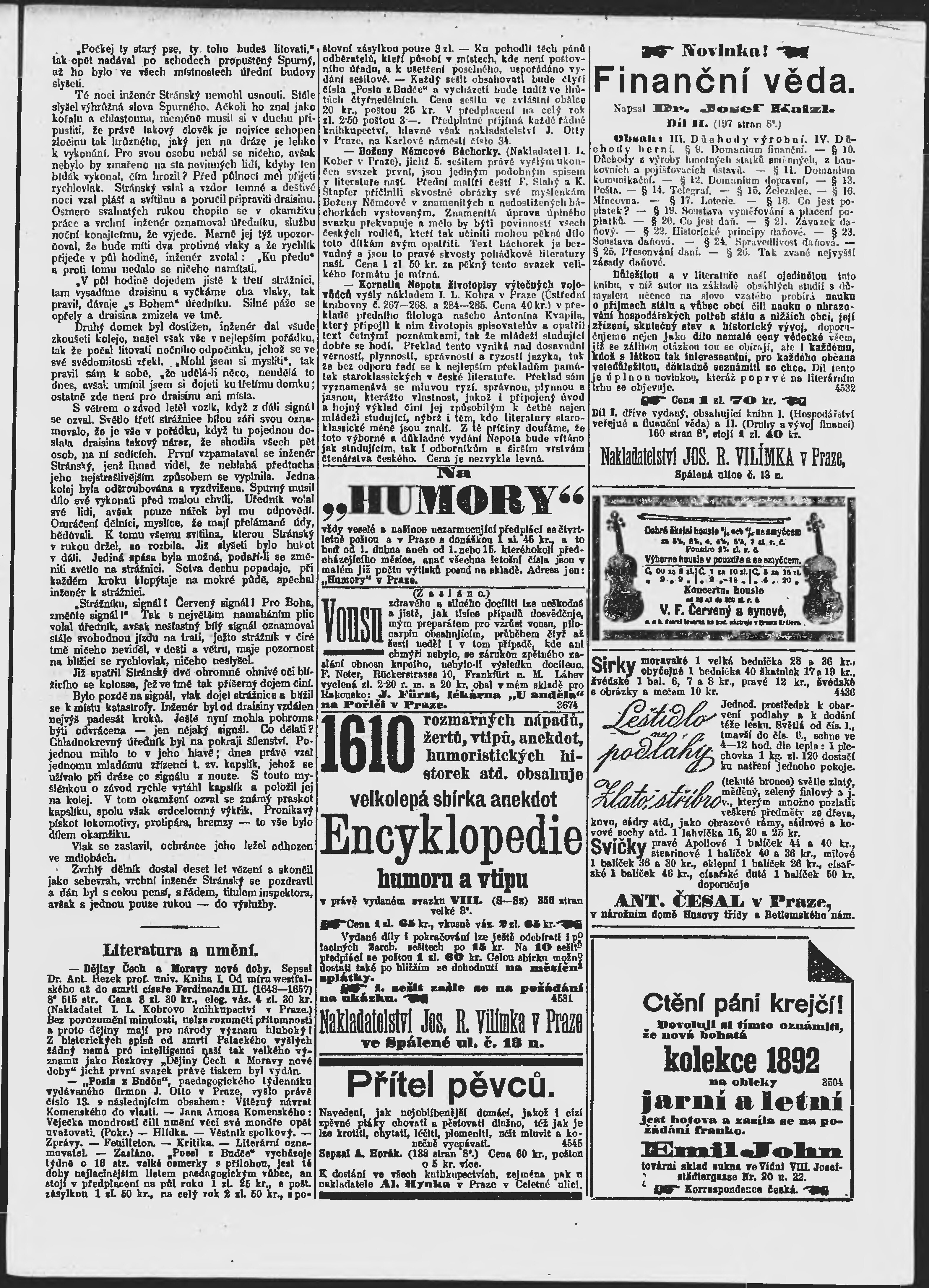 * Datum vydání výtisku: 3.4.1892 Číslo výtisku: 94 Poznámky k výtisku: ranní vydání;