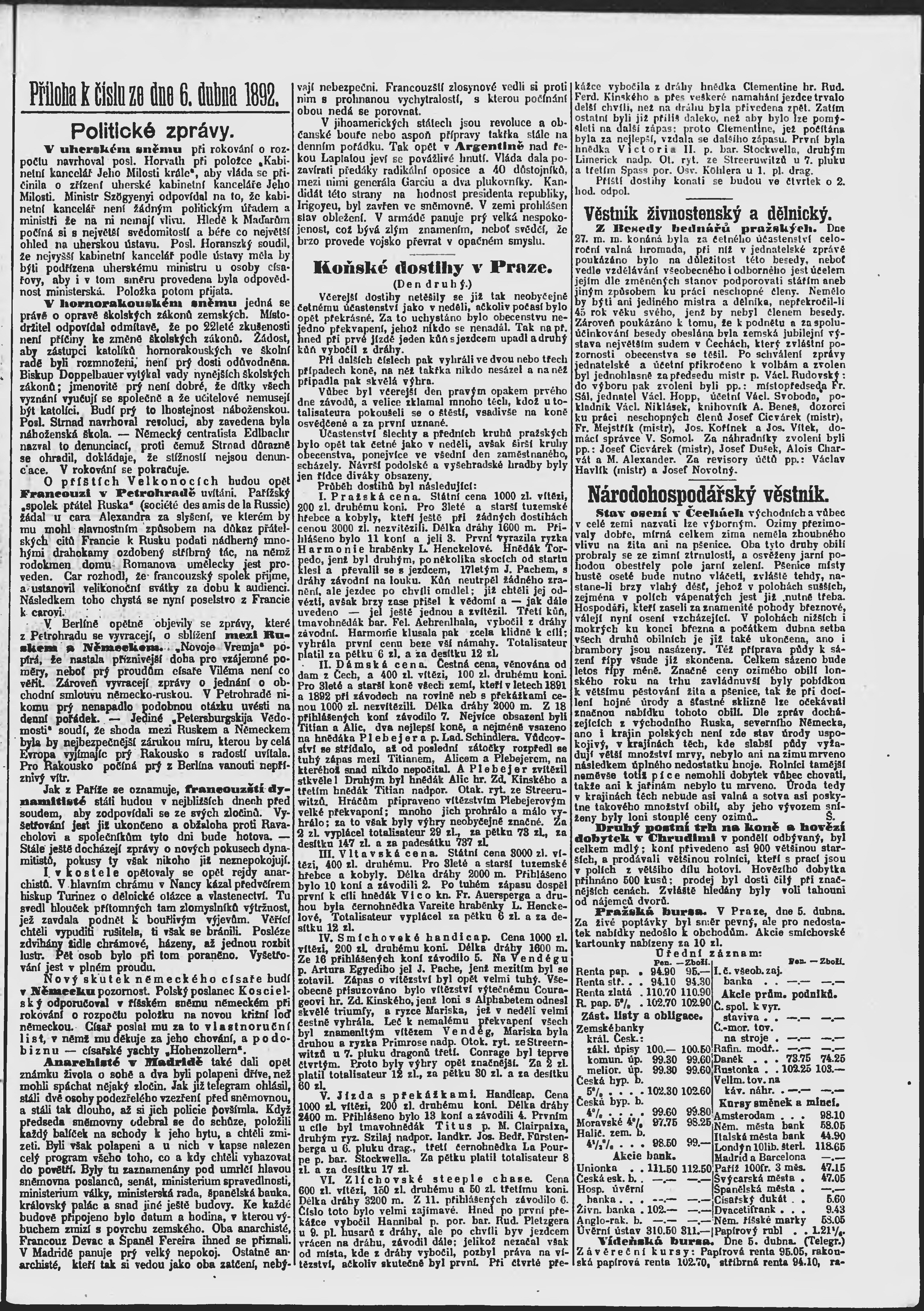 * Datum vydání výtisku: 6.4.1892 Číslo výtisku: 97 Poznámky k výtisku: ranní vydání;