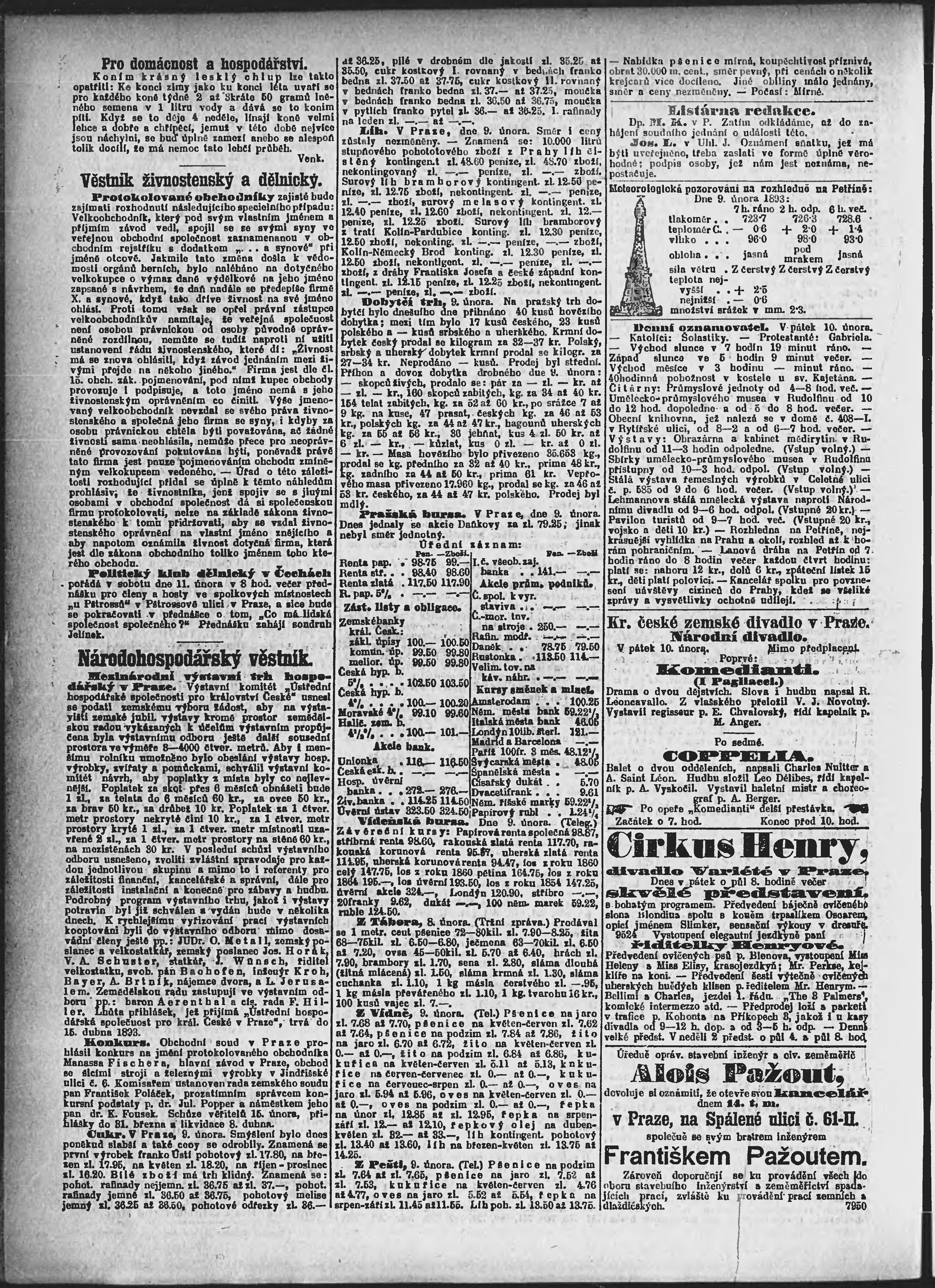 * Datum vydání výtisku: 10.2.1893 Číslo výtisku: 41 Poznámky k výtisku: ranní vydání;