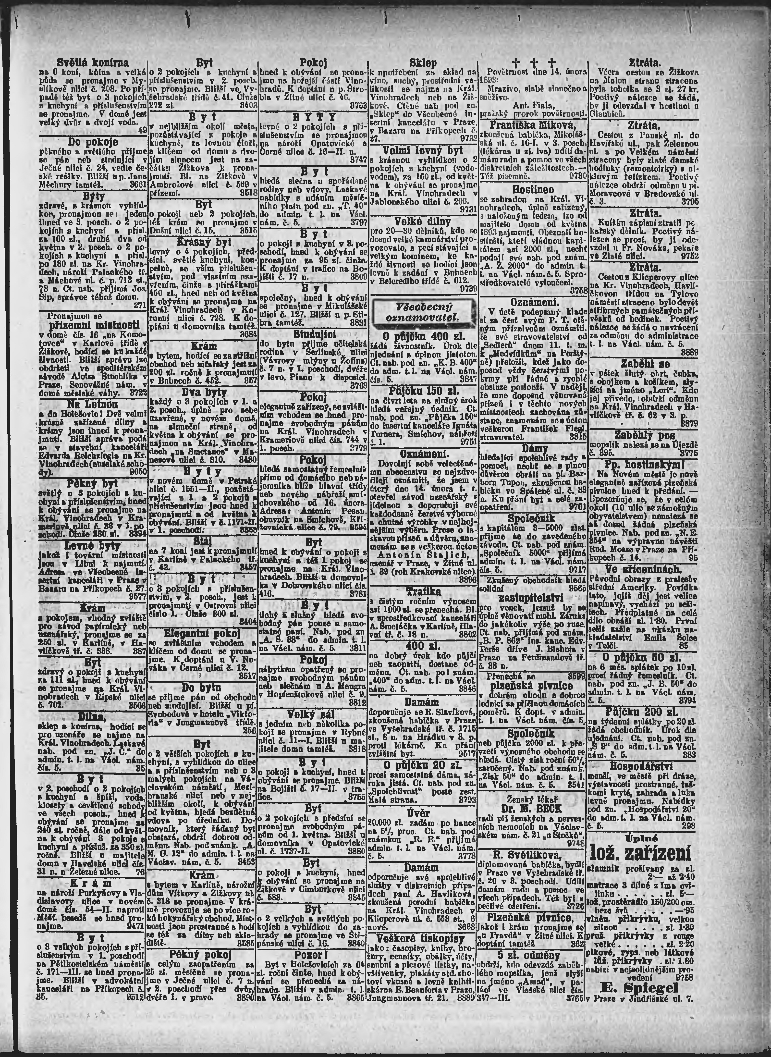 * Datum vydání výtisku: 14.2.1893 Číslo výtisku: 45 Poznámky k výtisku: ranní vydání;