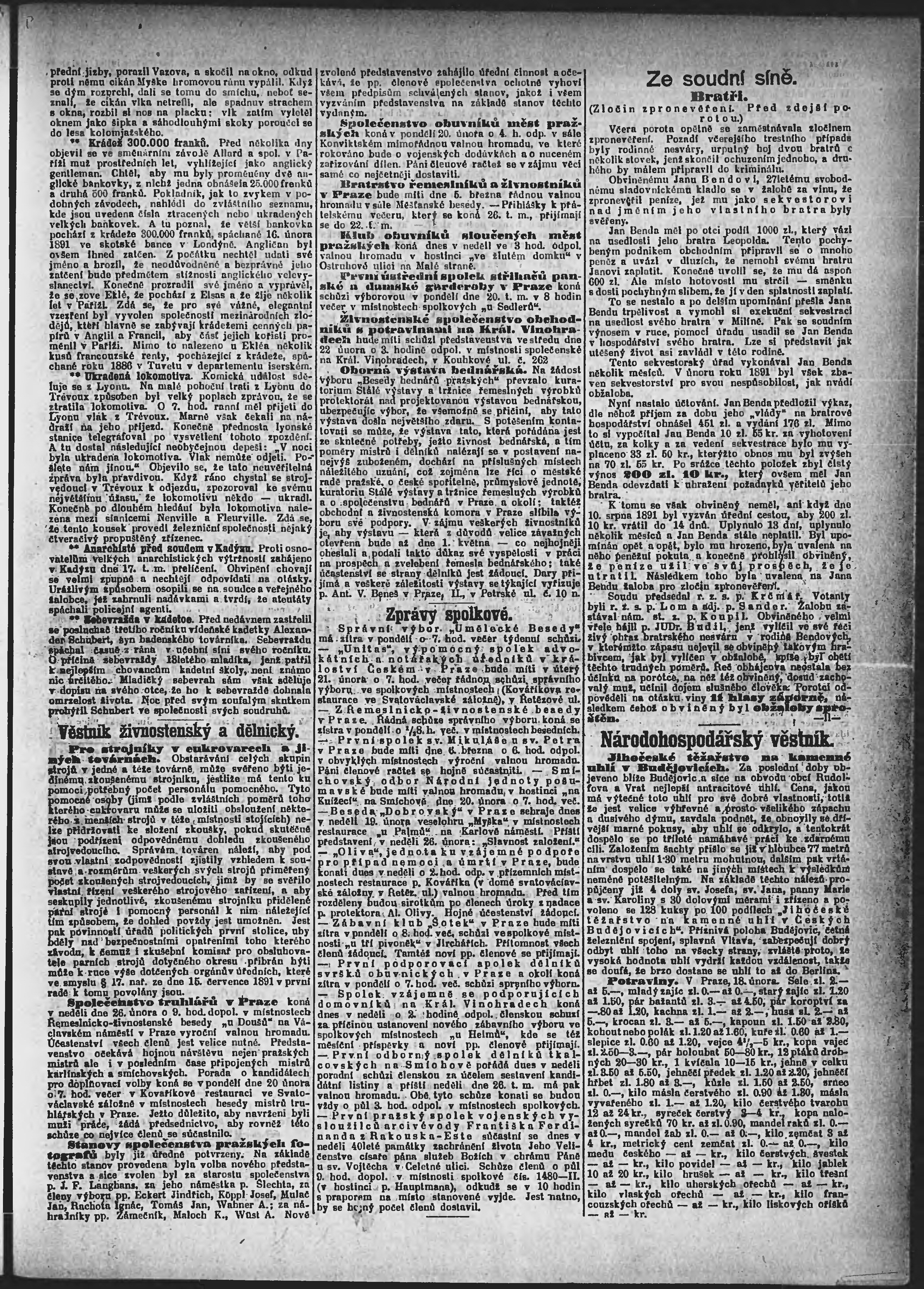 * Datum vydání výtisku: 19.2.1893 Číslo výtisku: 50 Poznámky k výtisku: ranní vydání;