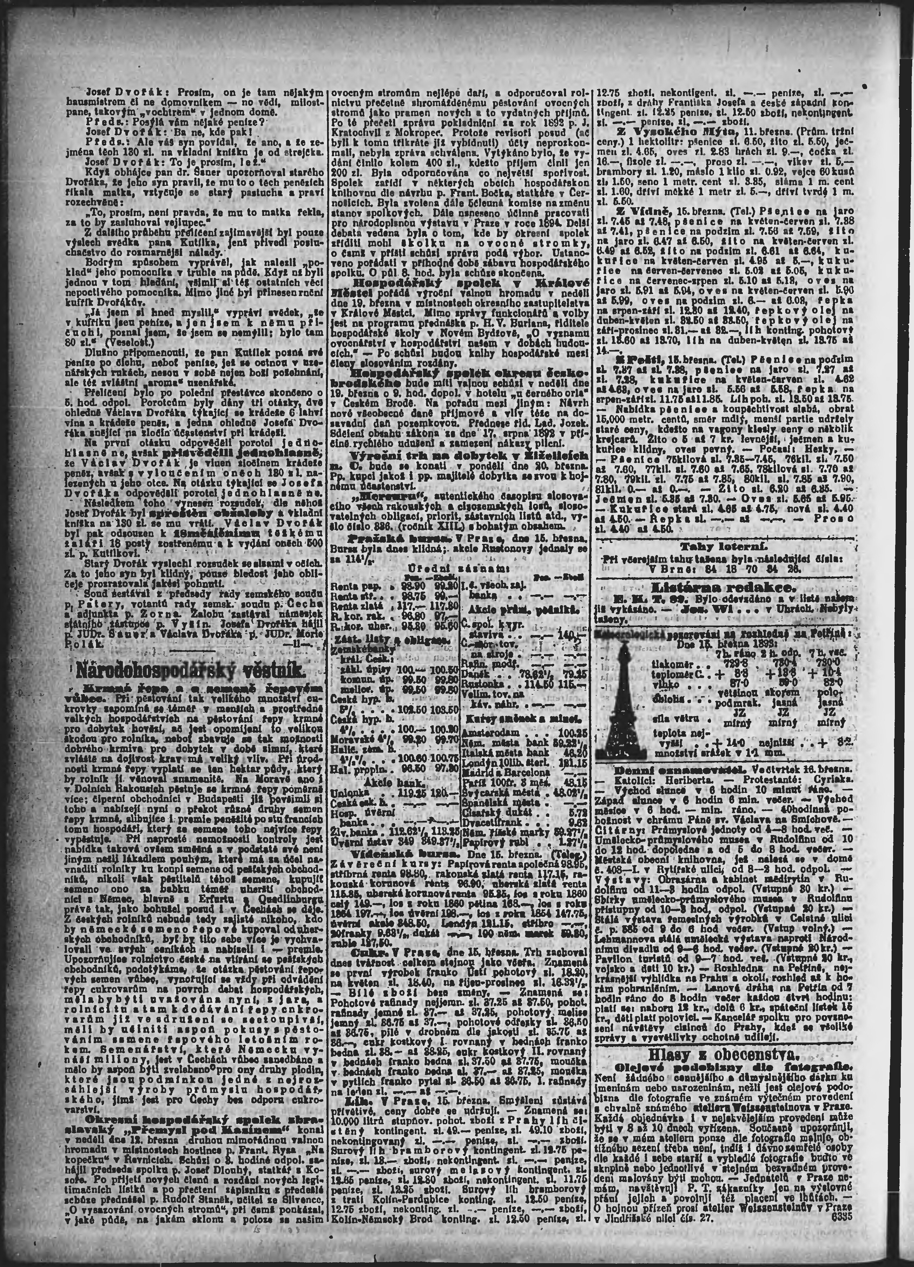 * Datum vydání výtisku: 16.3.1893 Číslo výtisku: 75 Poznámky k výtisku: ranní vydání;