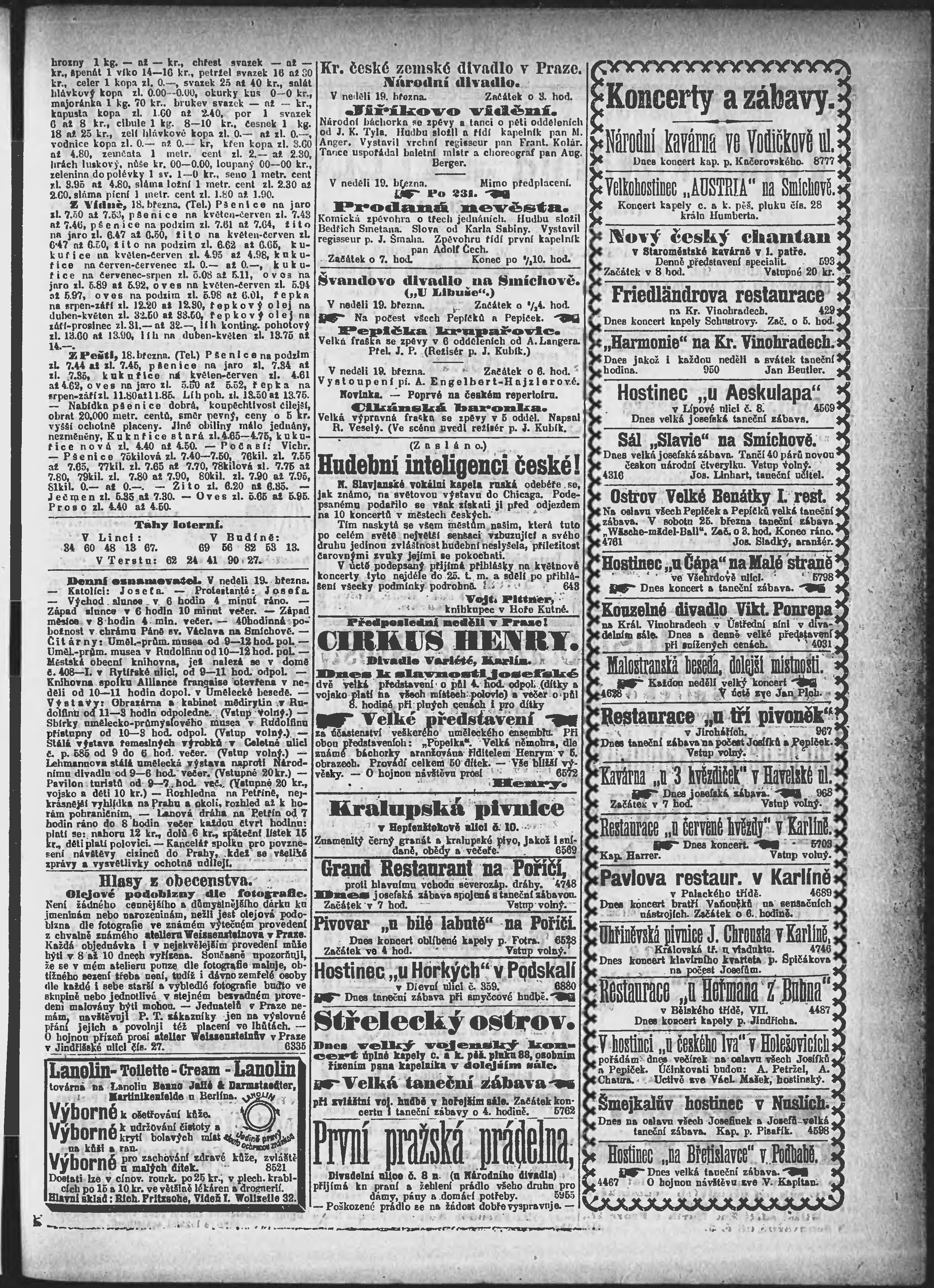 * Datum vydání výtisku: 19.3.1893 Číslo výtisku: 78 Poznámky k výtisku: ranní vydání;