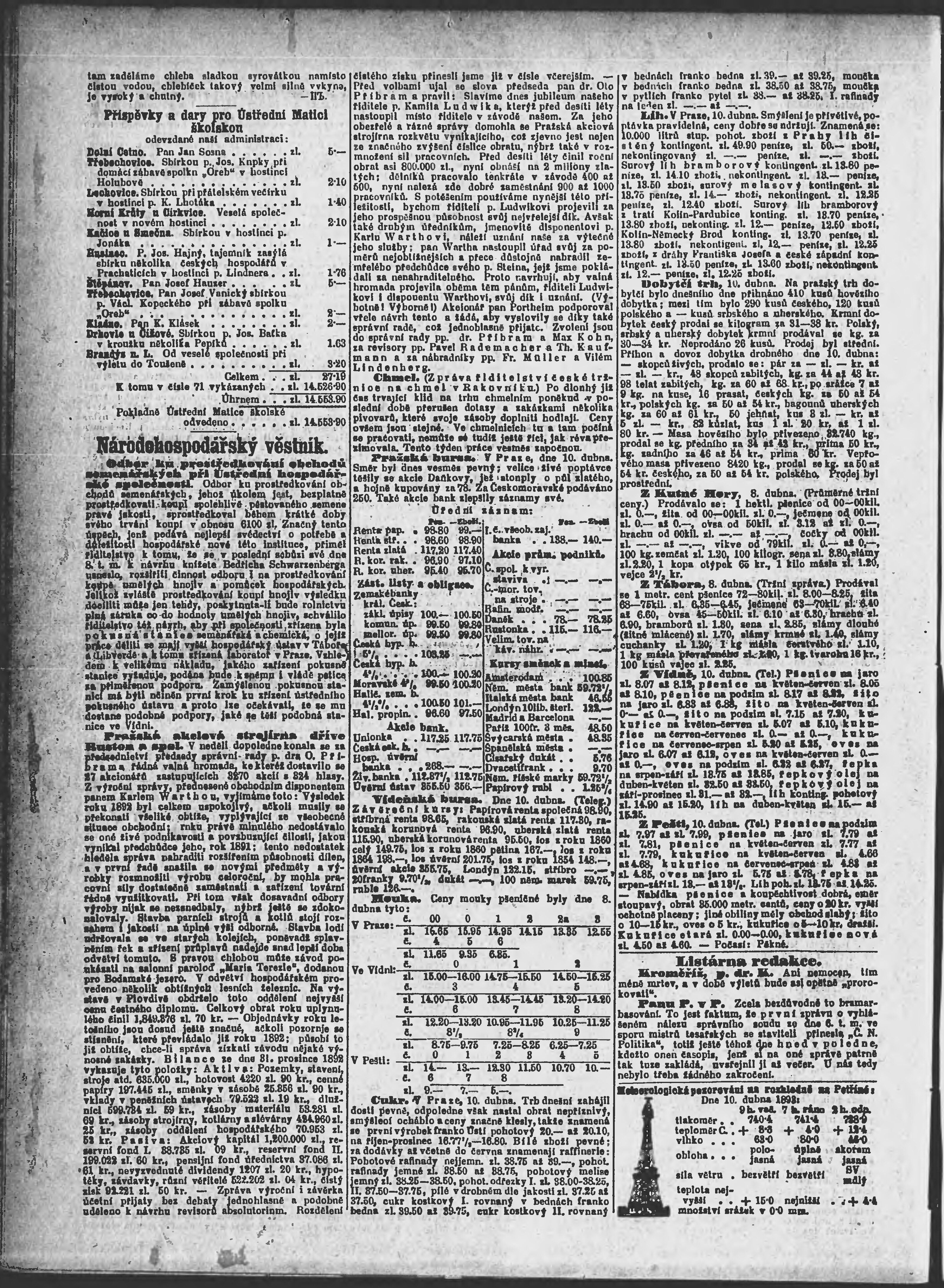 * Datum vydání výtisku: 11.4.1893 Číslo výtisku: 100 Poznámky k výtisku: ranní vydání;