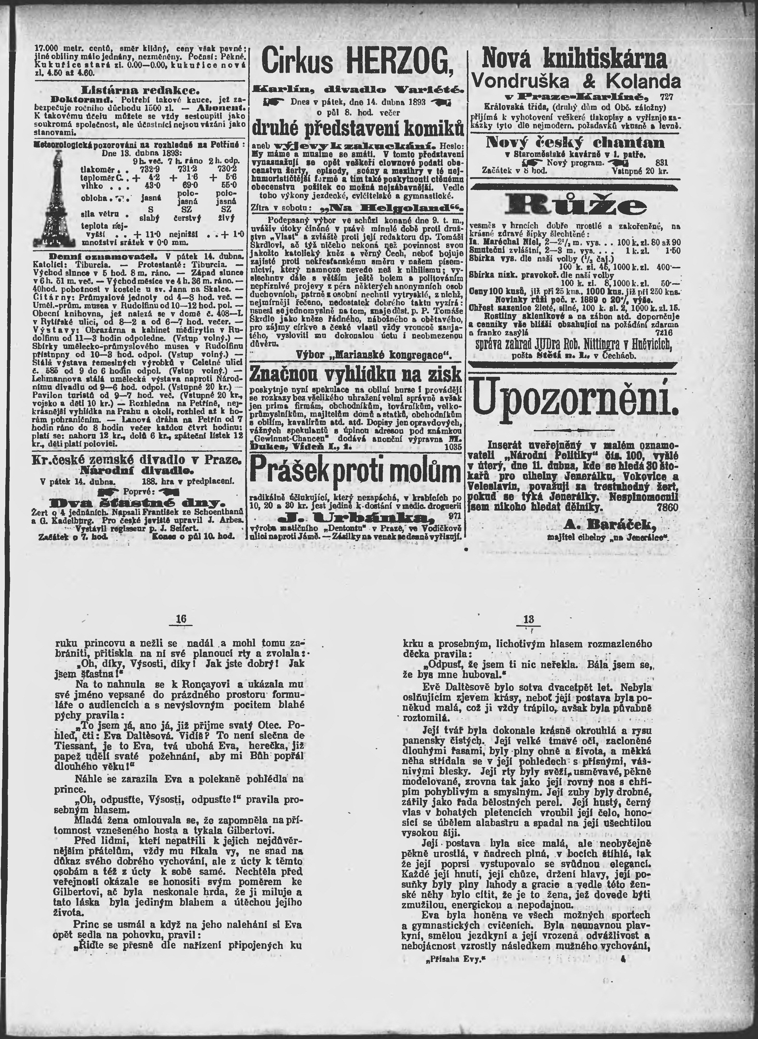 * Datum vydání výtisku: 14.4.1893 Číslo výtisku: 103 Poznámky k výtisku: ranní vydání;