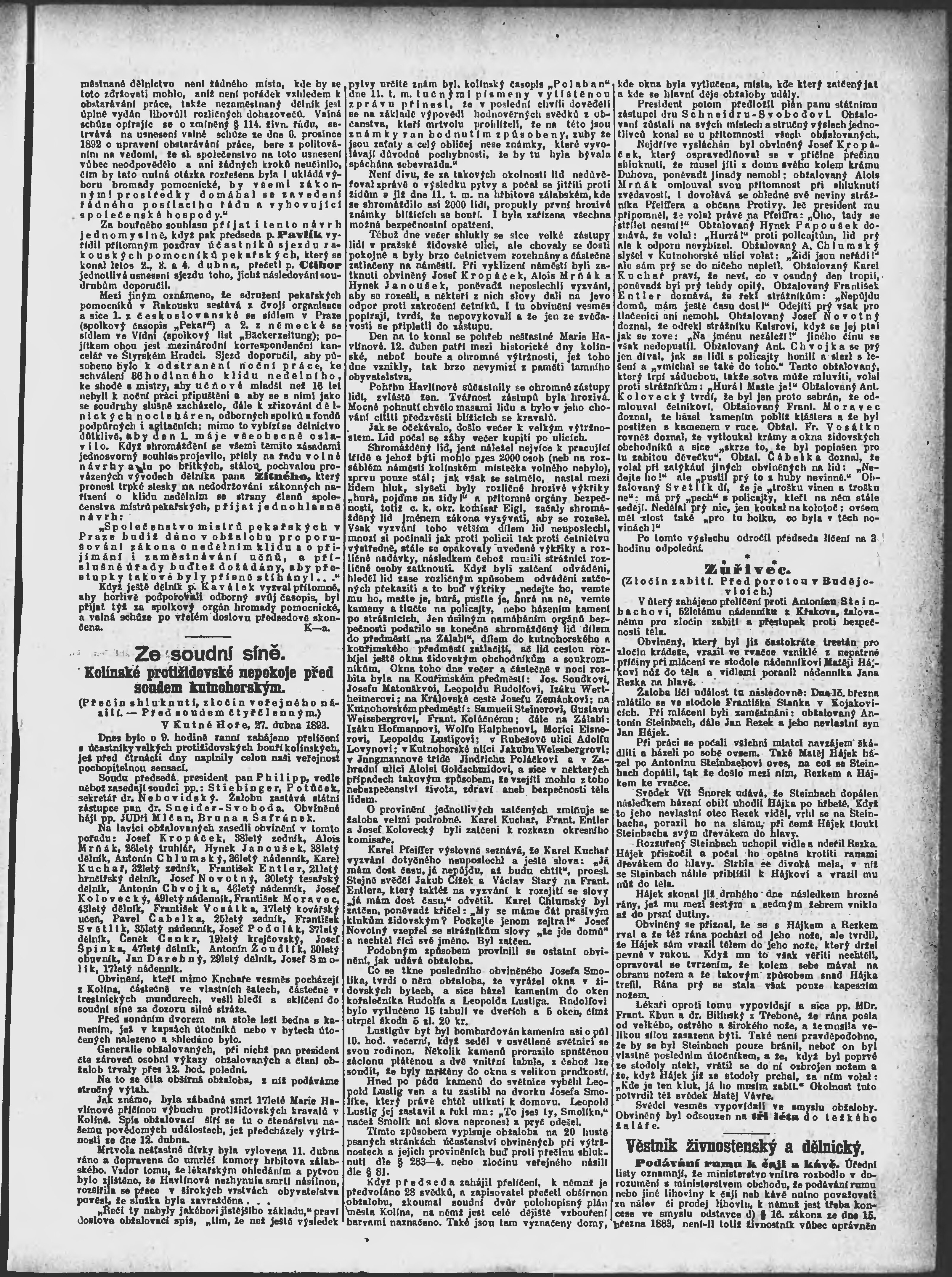 * Datum vydání výtisku: 28.4.1893 Číslo výtisku: 117 Poznámky k výtisku: ranní vydání;