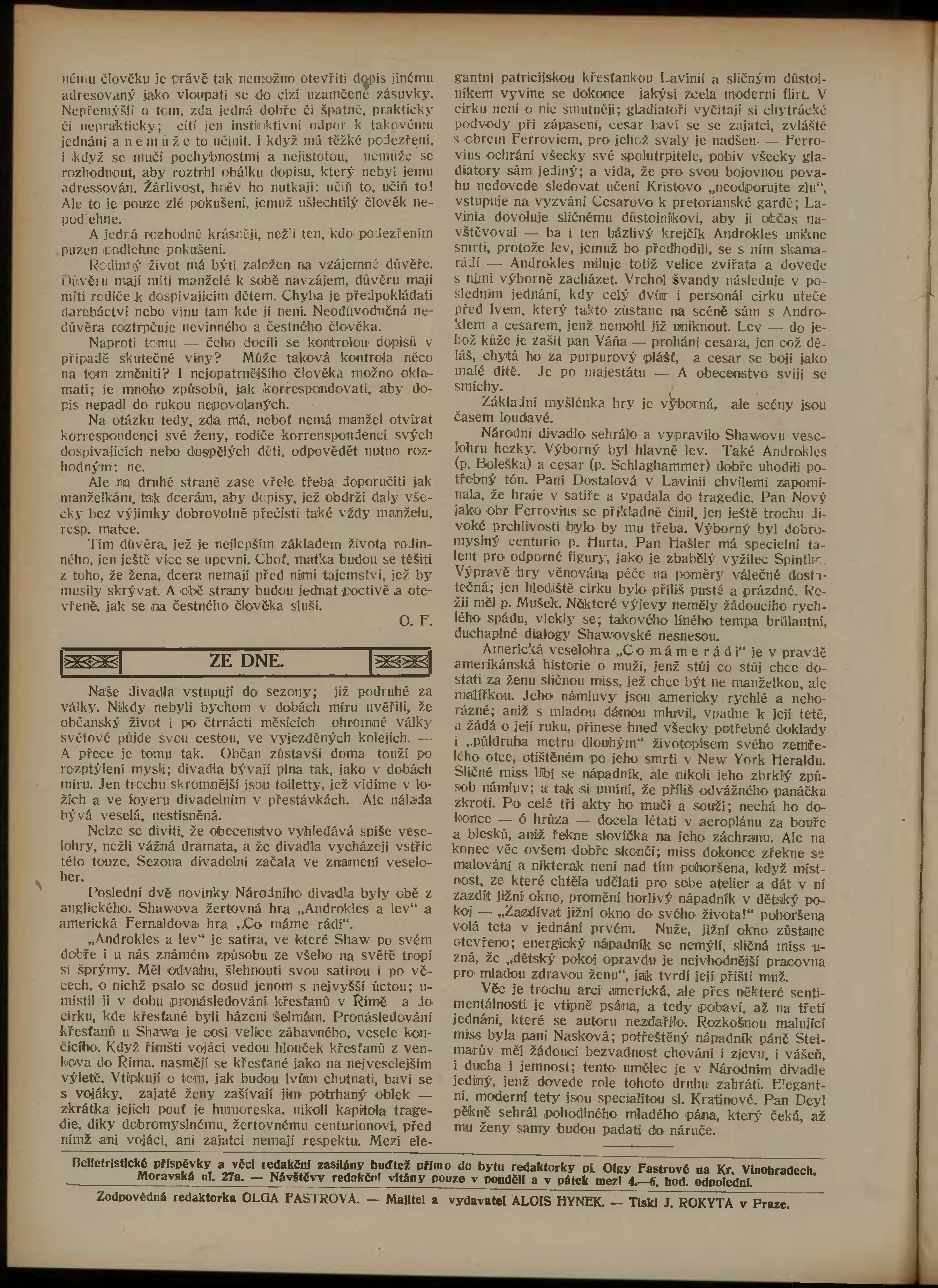 * Datum vydání výtisku: 1.10.1915 Číslo výtisku: 1 Typ výtisku: příloha Poznámky k výtisku: belletristická příloha;