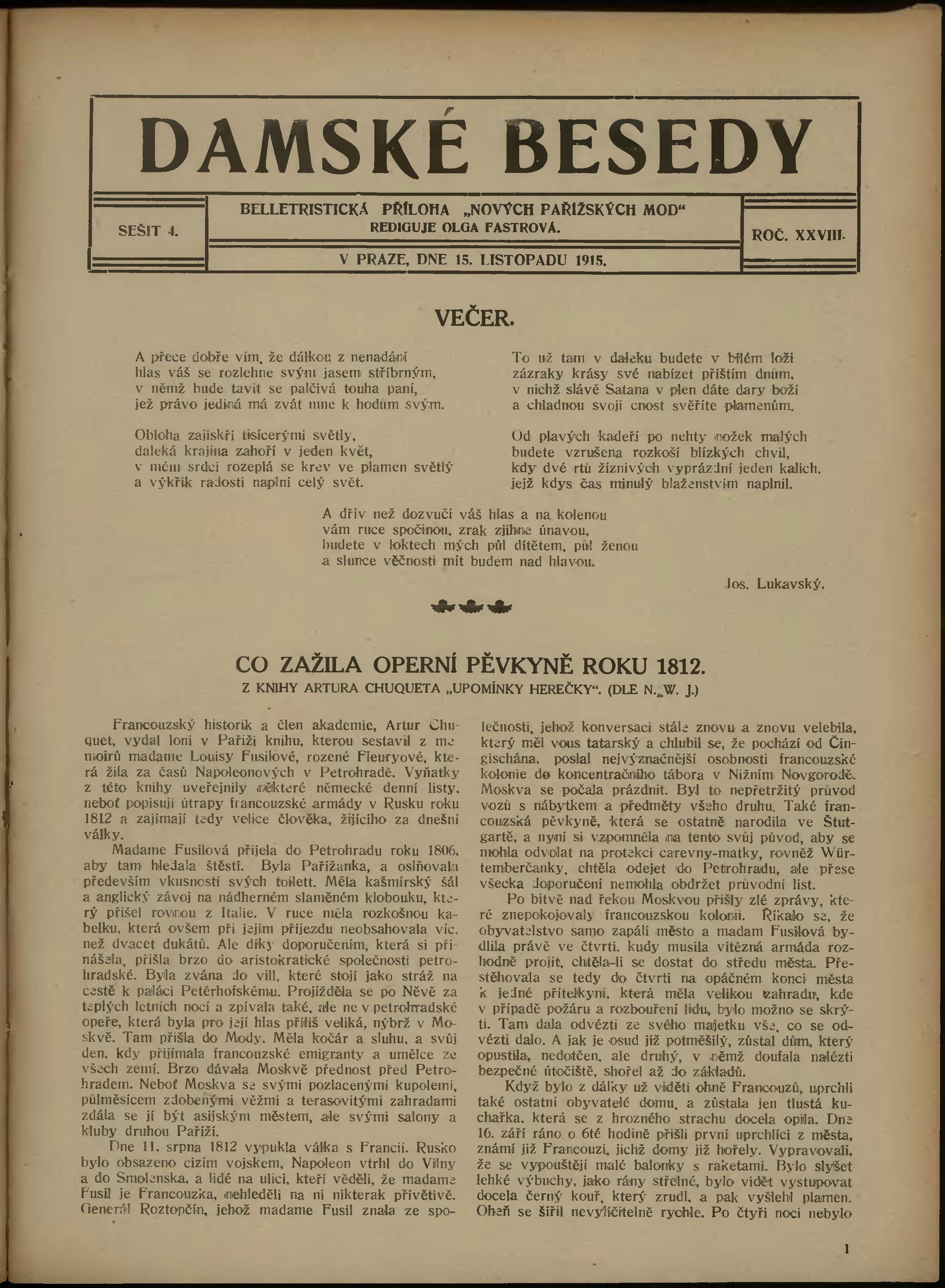 Poznámky k výtisku: belletristická příloha;