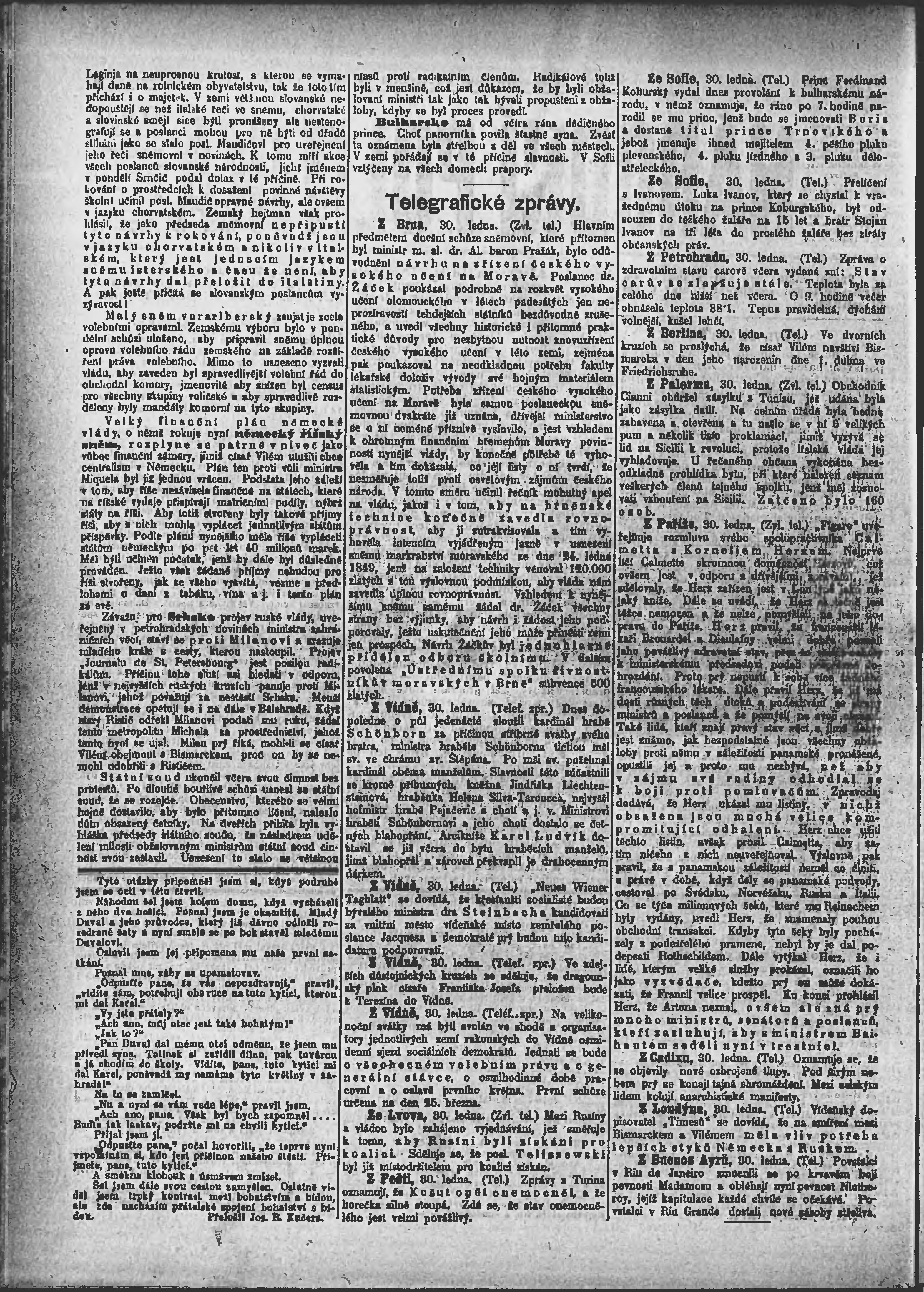 * Datum vydání výtisku: 31.1.1894 Číslo výtisku: 30 Poznámky k výtisku: ranní vydání;