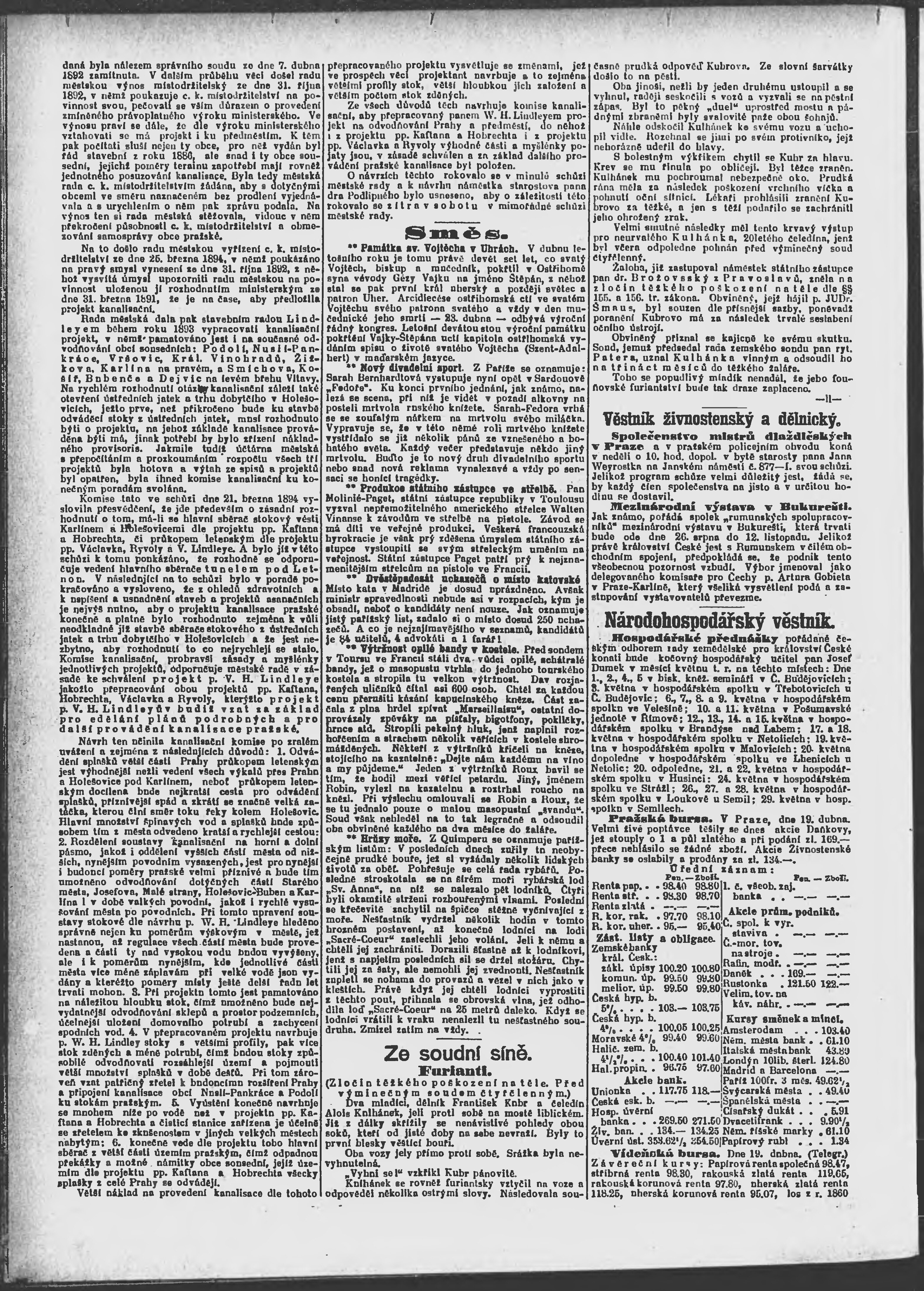 * Datum vydání výtisku: 20.4.1894 Číslo výtisku: 108 Poznámky k výtisku: ranní vydání;