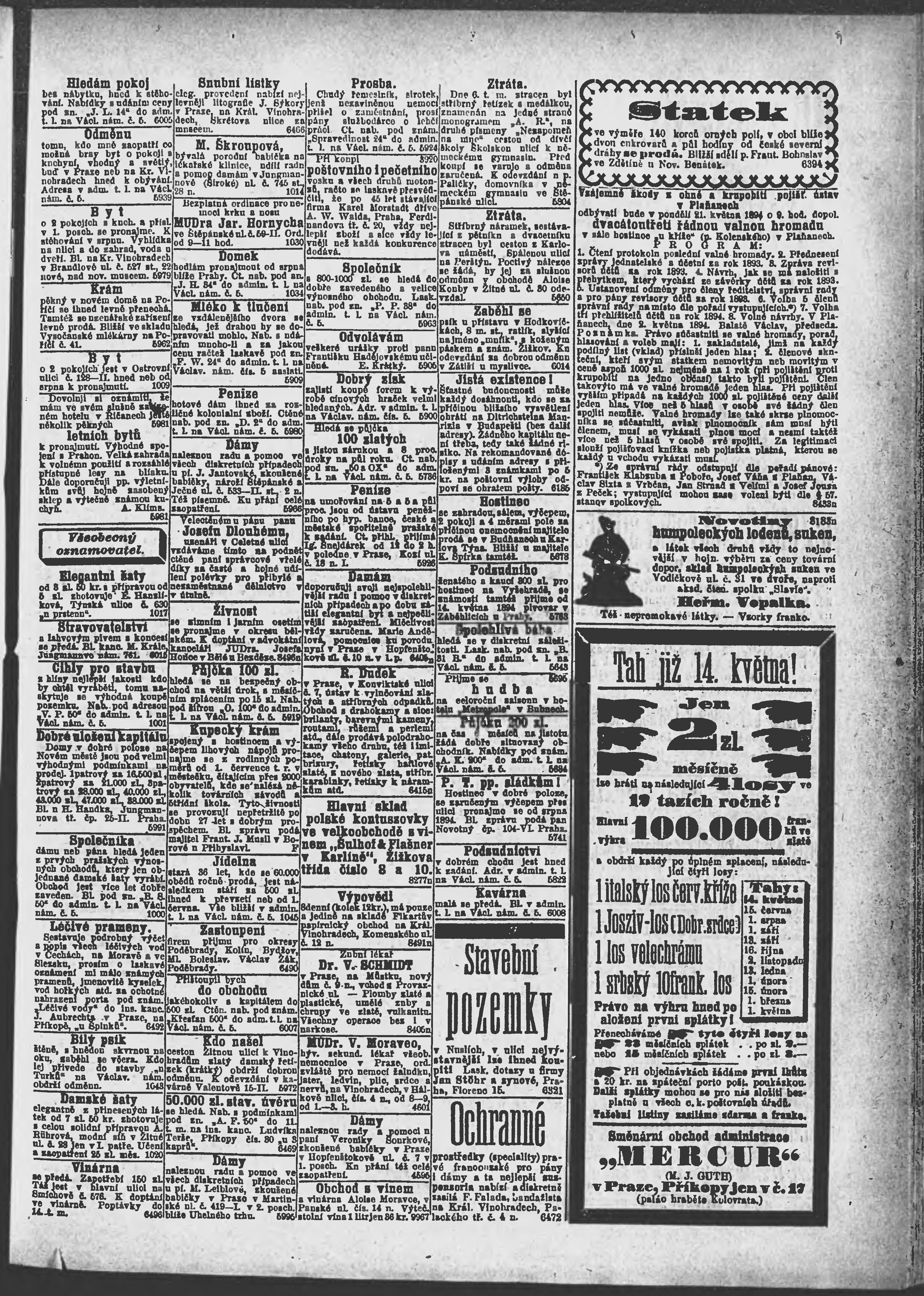 * Datum vydání výtisku: 9.5.1894 Číslo výtisku: 127 Poznámky k výtisku: ranní vydání;