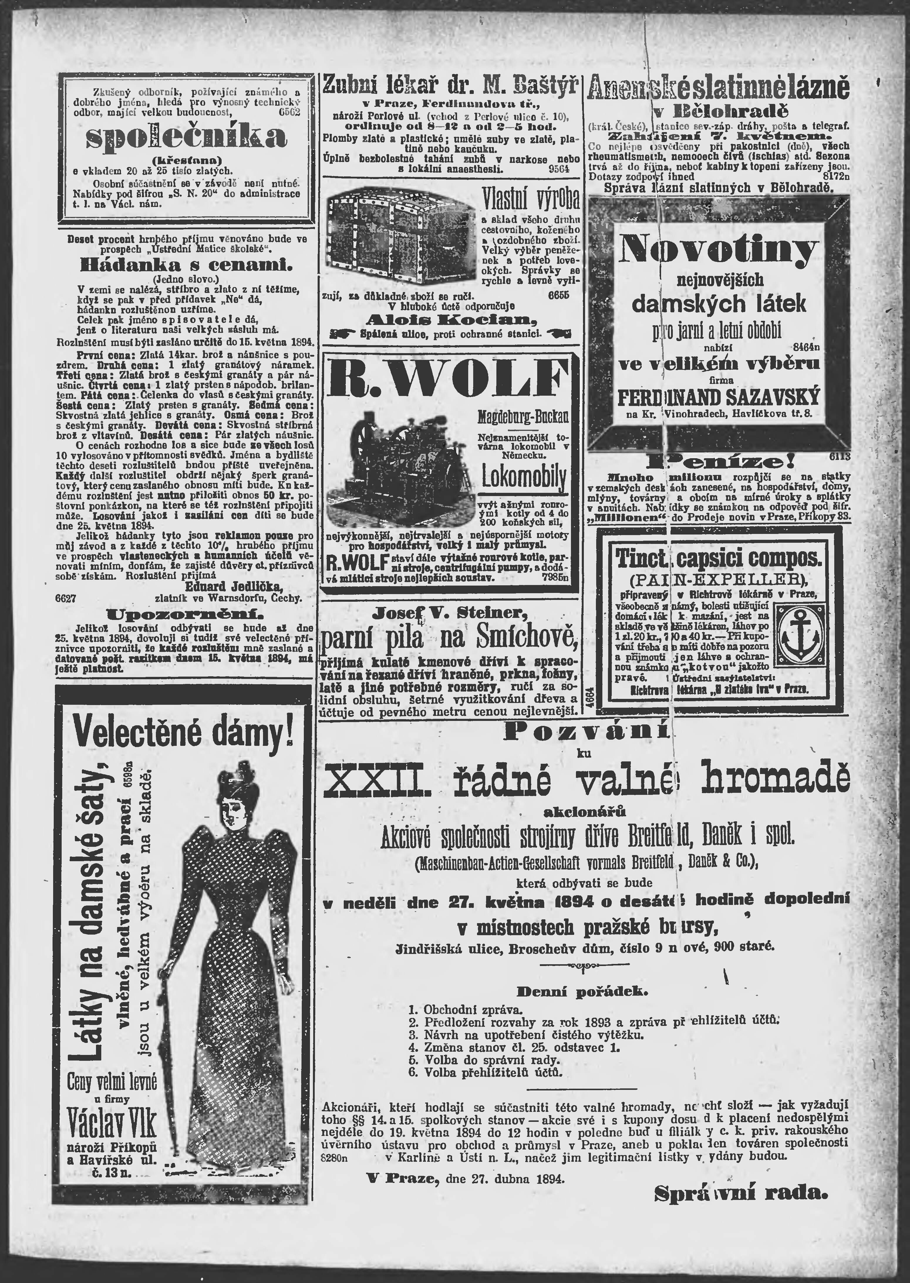 * Datum vydání výtisku: 13.5.1894 Číslo výtisku: 131 Poznámky k výtisku: ranní vydání;