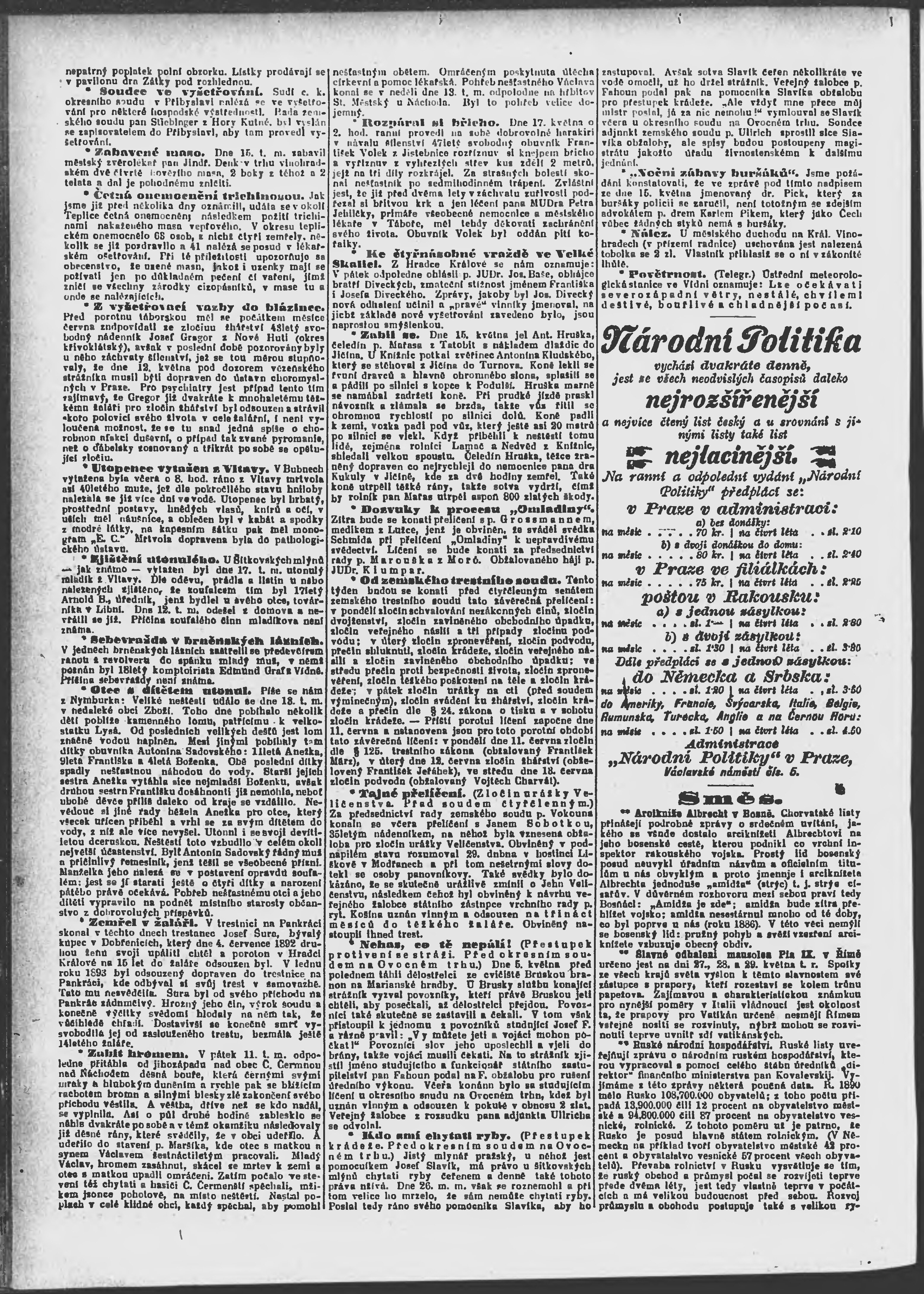 * Datum vydání výtisku: 20.5.1894 Číslo výtisku: 137 Poznámky k výtisku: ranní vydání;