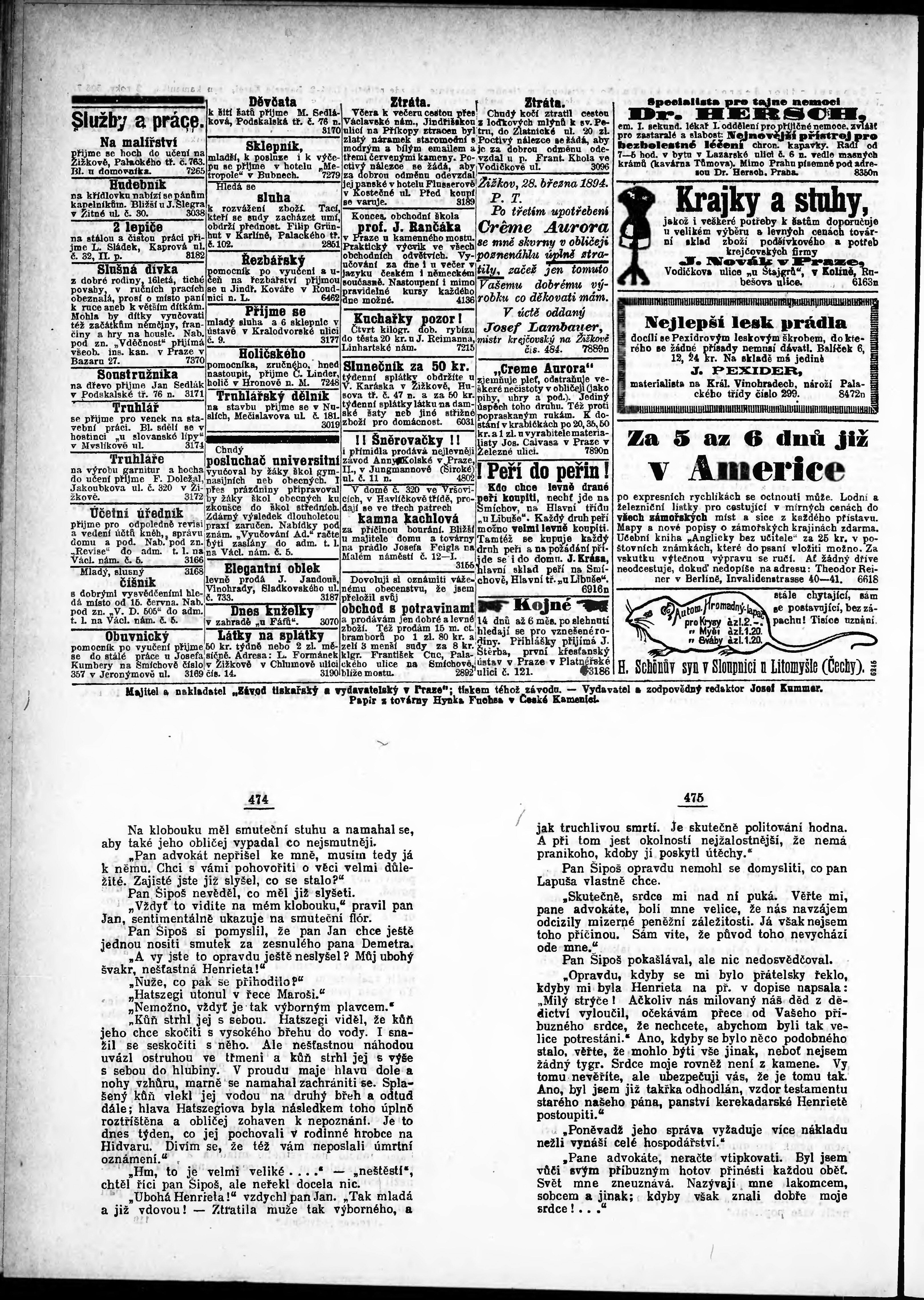 * Datum vydání výtisku: 23.5.1894 Číslo výtisku: 140 Poznámky k výtisku: odpolední vydání;