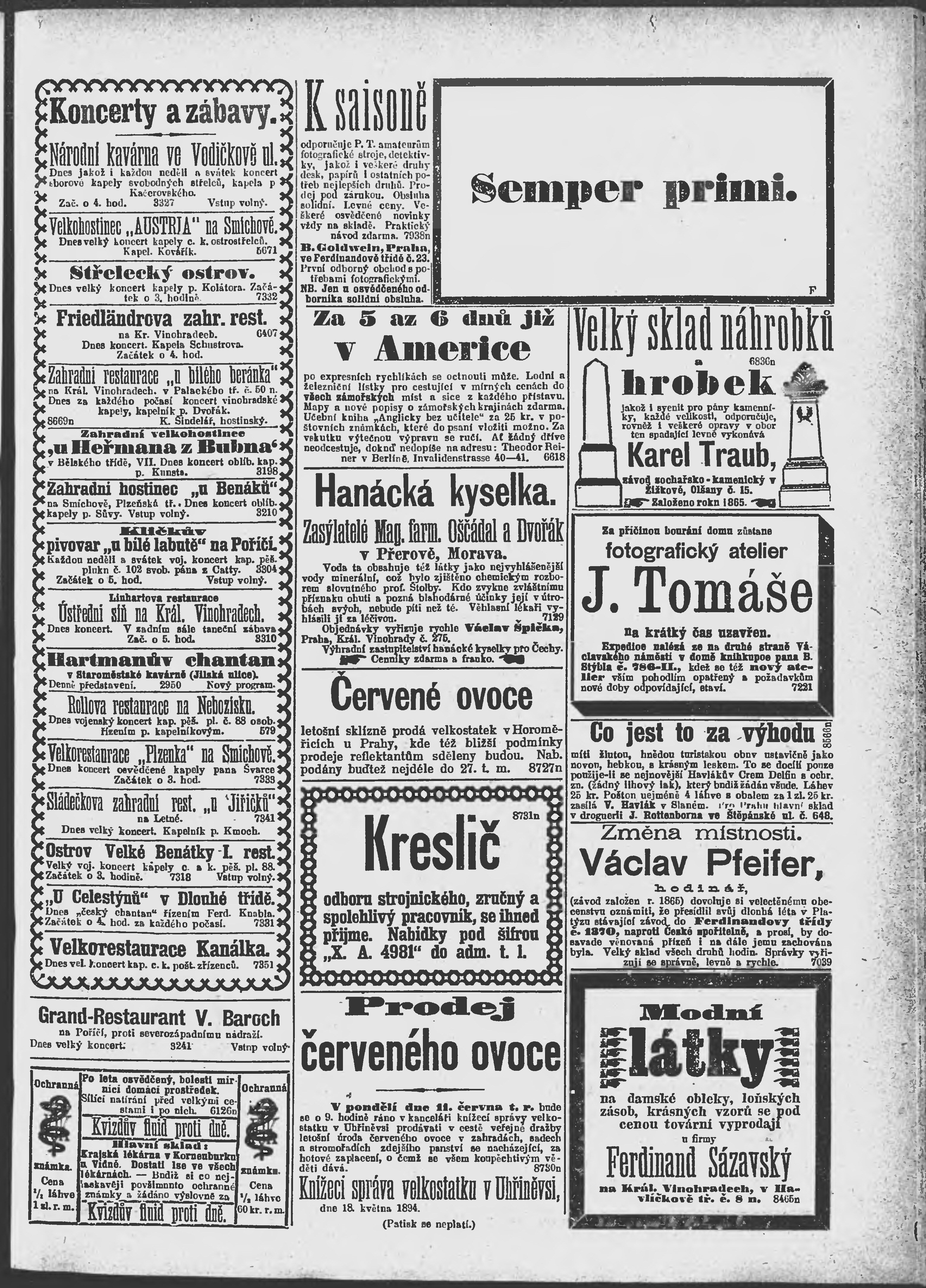 * Datum vydání výtisku: 24.5.1894 Číslo výtisku: 141 Poznámky k výtisku: ranní vydání;