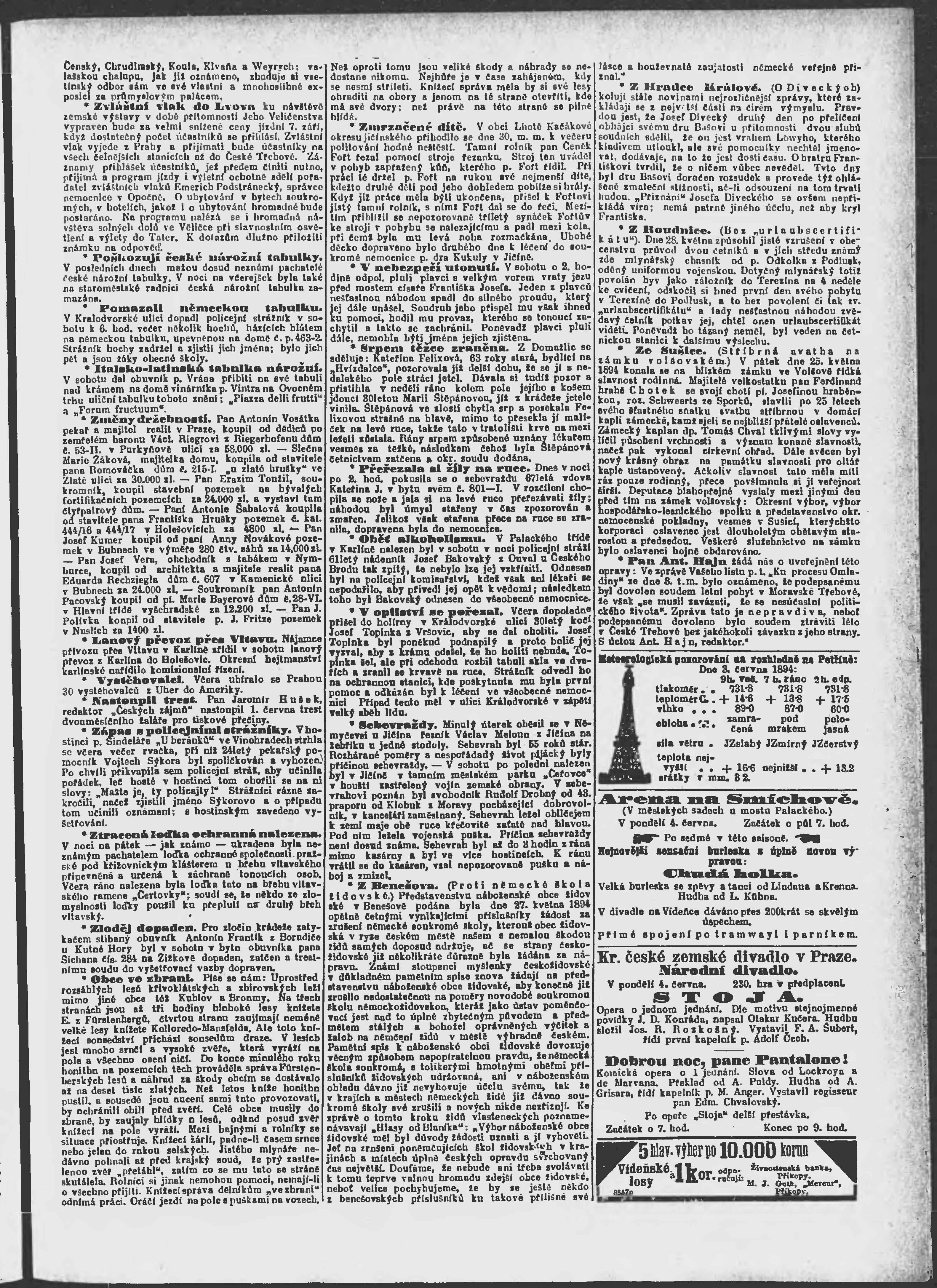* Datum vydání výtisku: 4.6.1894 Číslo výtisku: 152 Poznámky k výtisku: ranní vydání;