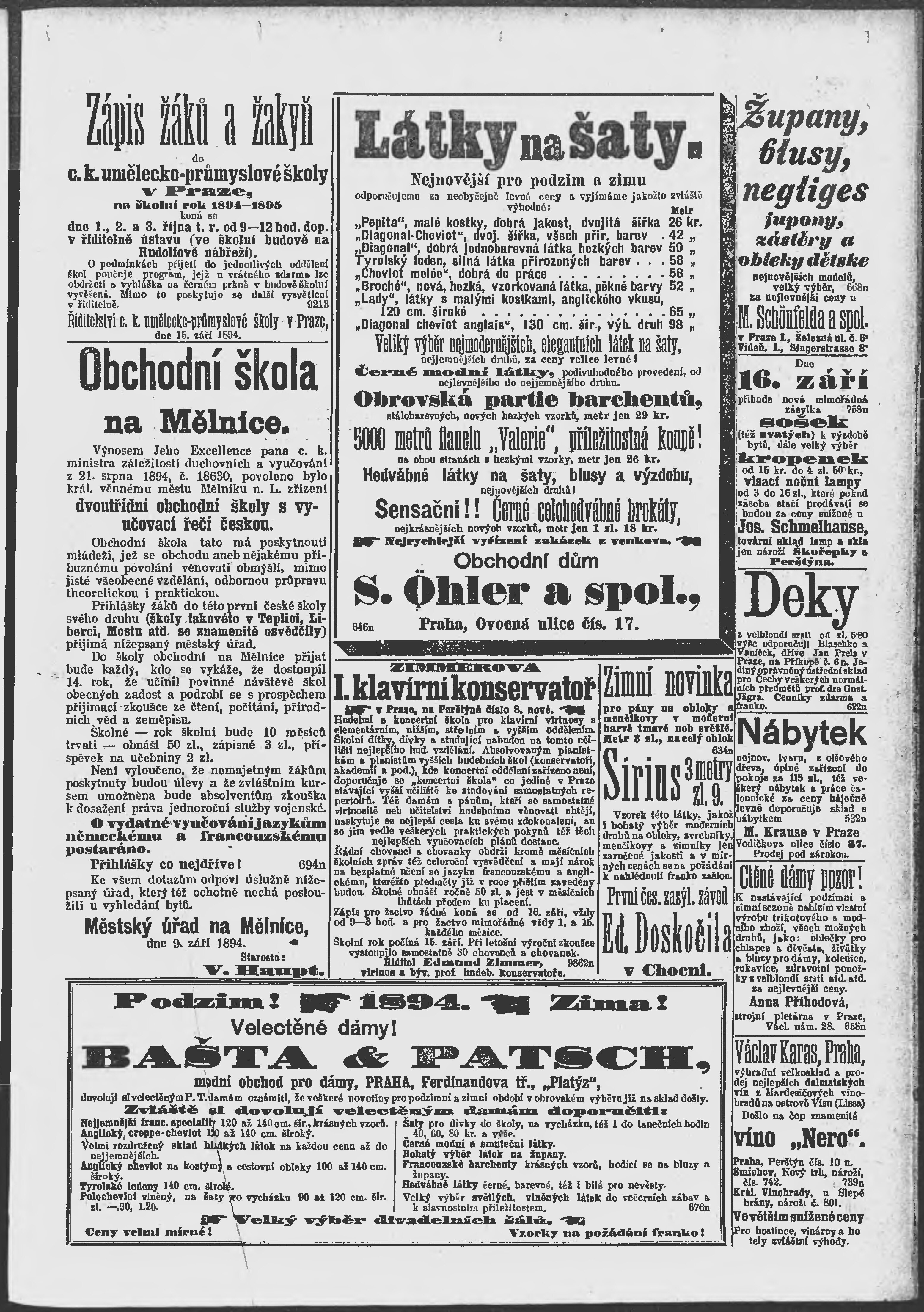 * Datum vydání výtisku: 16.9.1894 Číslo výtisku: 256 Poznámky k výtisku: ranní vydání;