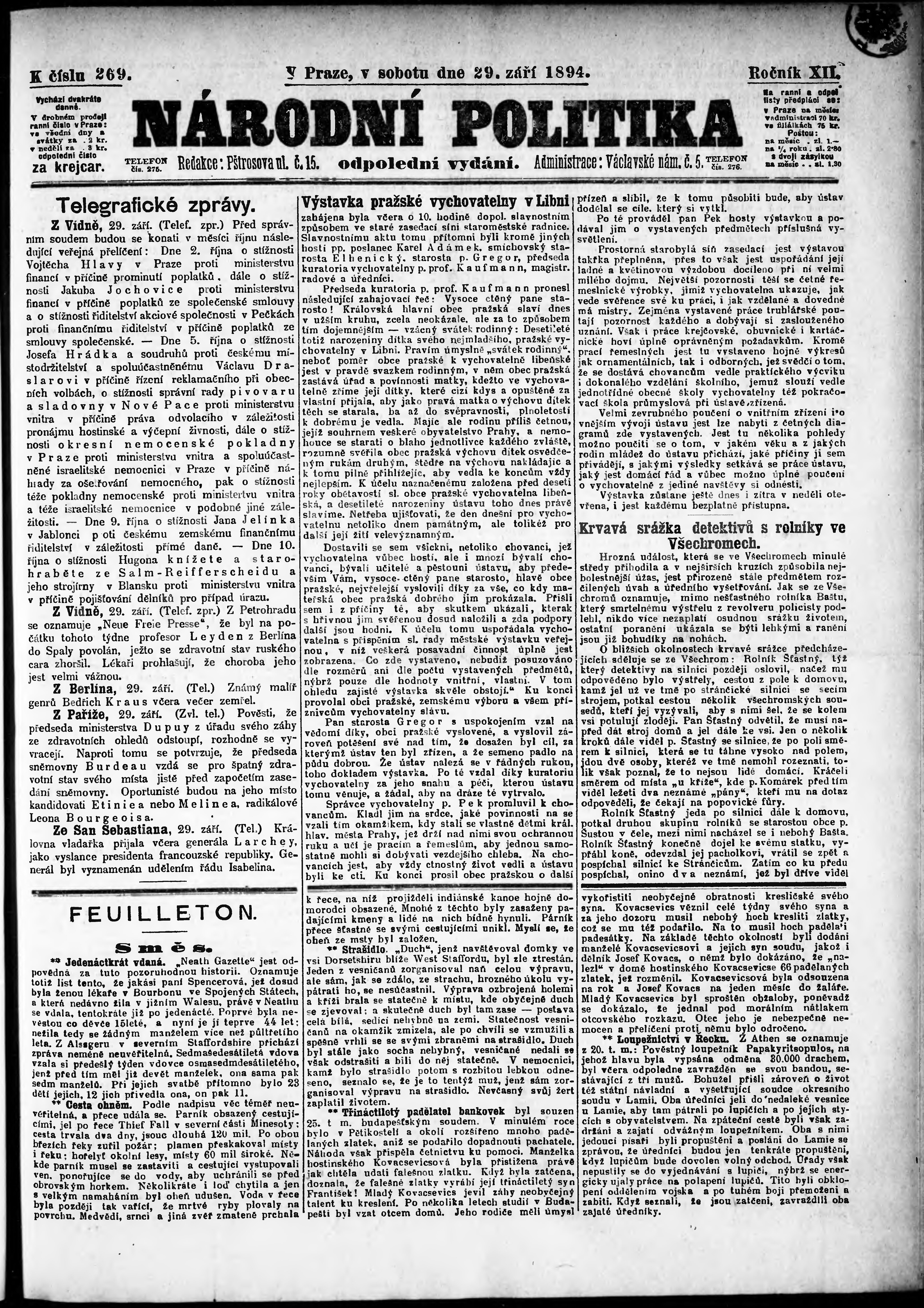* Datum vydání výtisku: 29.9.1894 Číslo výtisku: 269 Poznámky k výtisku: odpolední vydání;