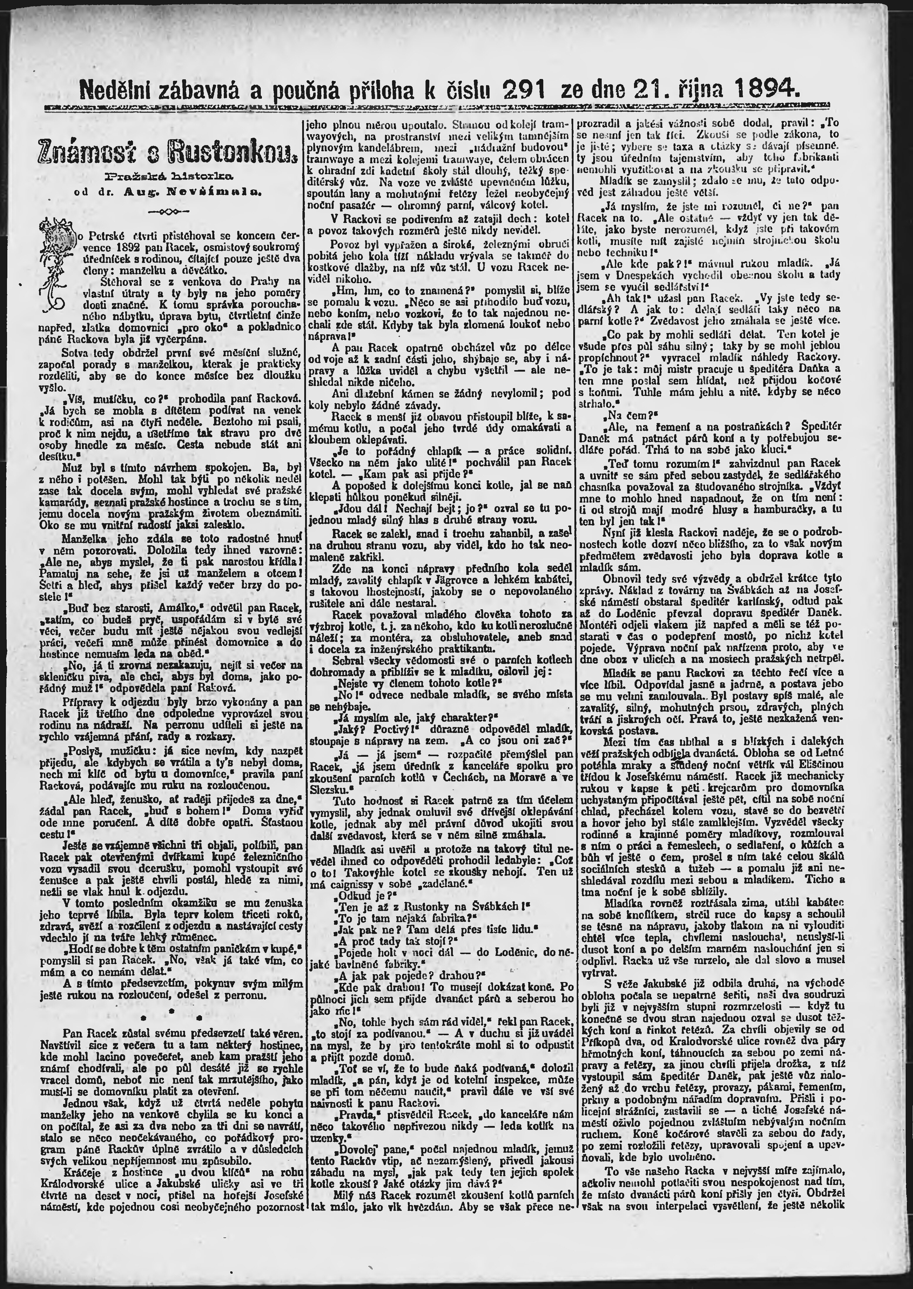 * Datum vydání výtisku: 21.10.1894 Číslo výtisku: 291 Poznámky k výtisku: ranní vydání;