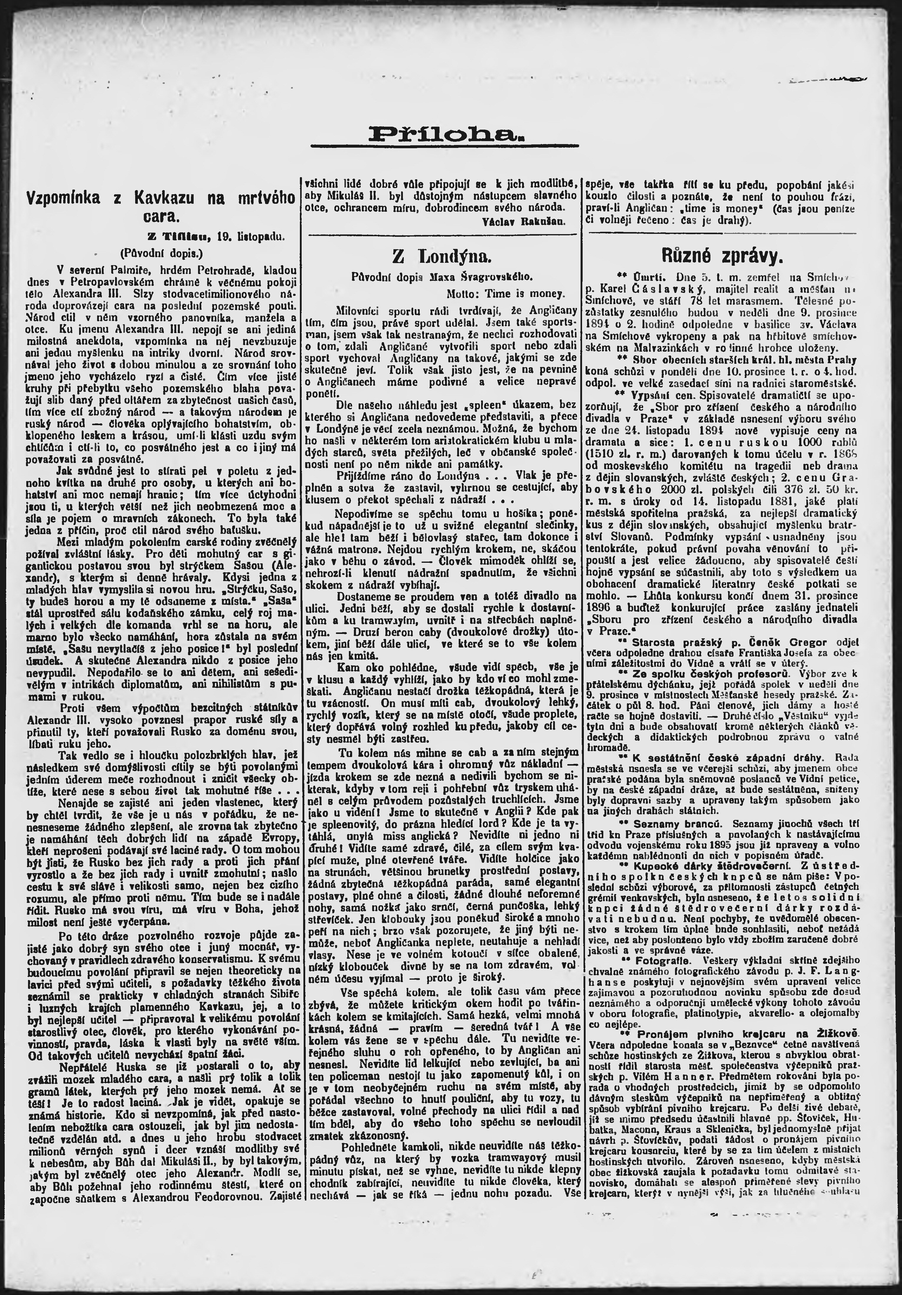 * Datum vydání výtisku: 7.12.1894 Číslo výtisku: 338 Poznámky k výtisku: ranní vydání;