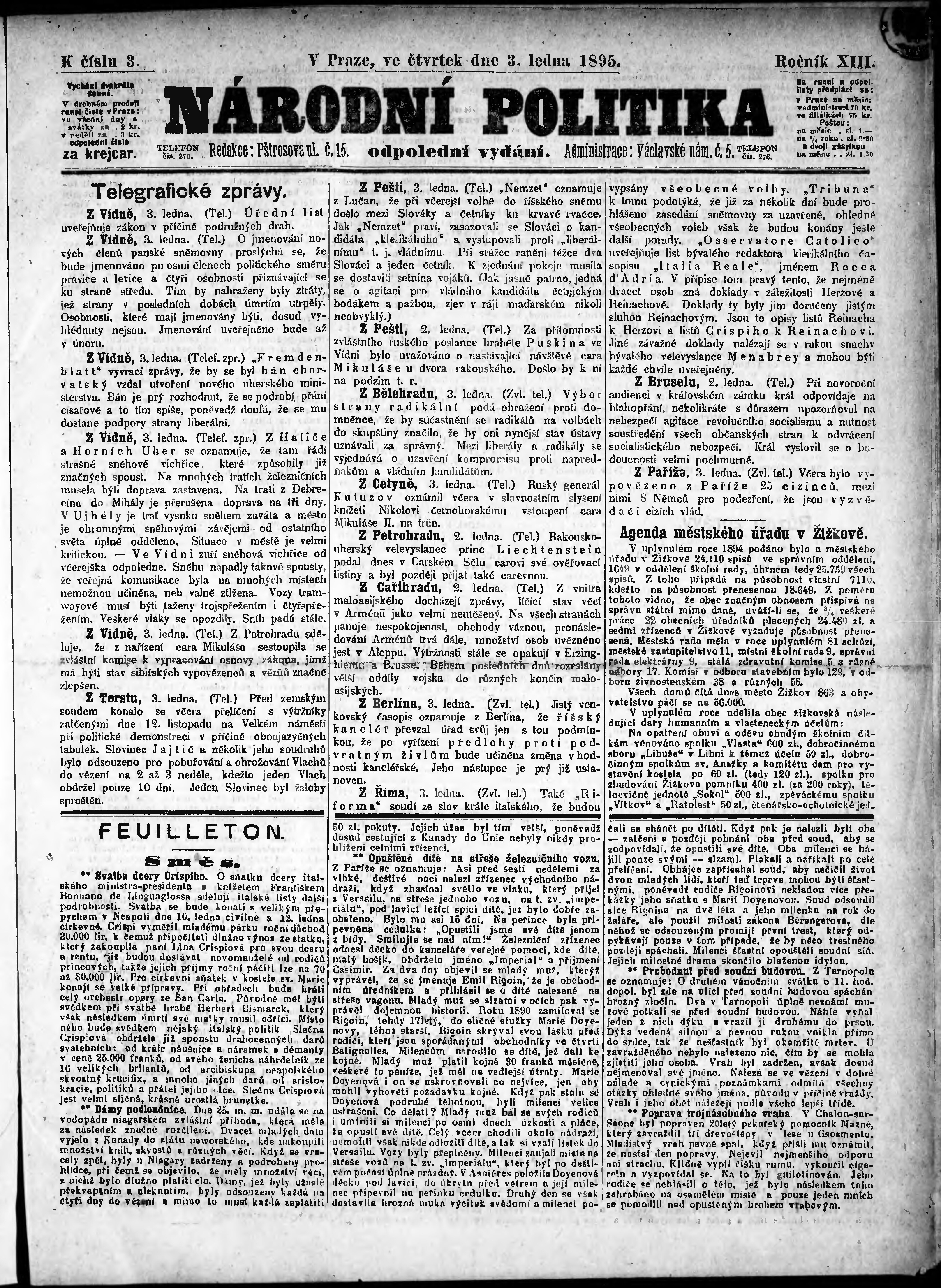 * Datum vydání výtisku: 3.1.1895 Číslo výtisku: 3 Poznámky k výtisku: odpolední vydání;
