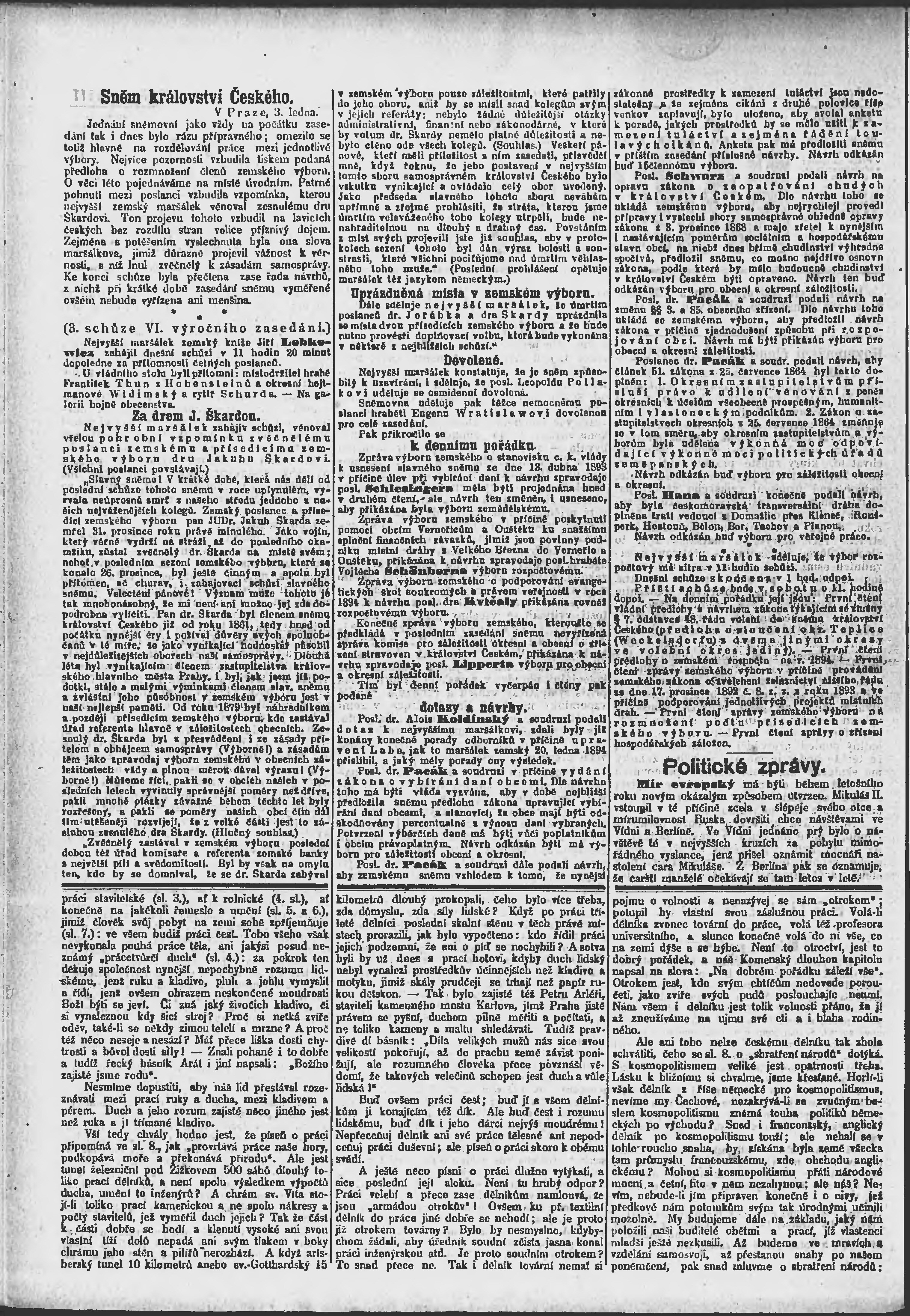 * Datum vydání výtisku: 4.1.1895 Číslo výtisku: 4 Poznámky k výtisku: ranní vydání;