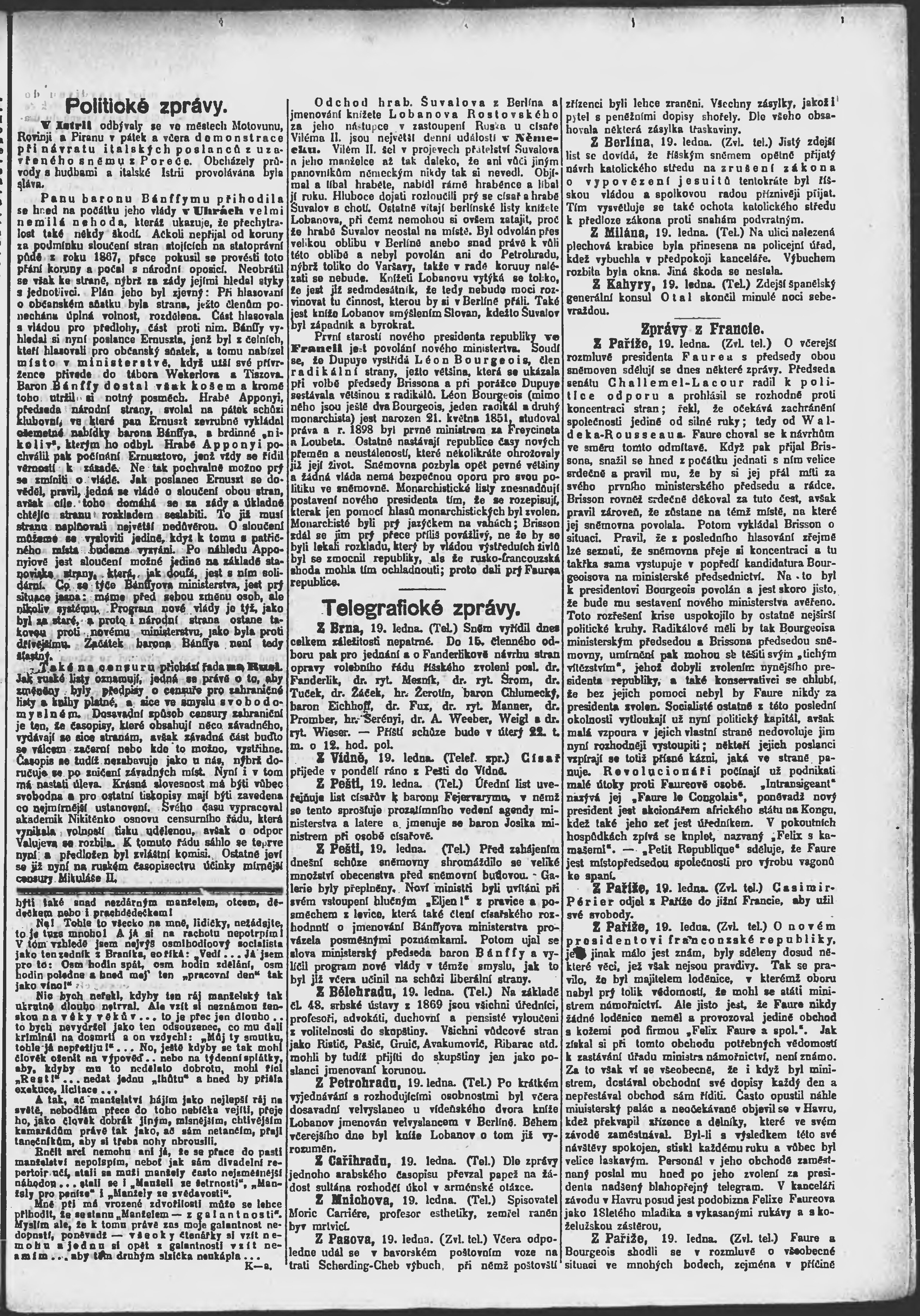* Datum vydání výtisku: 20.1.1895 Číslo výtisku: 20 Poznámky k výtisku: ranní vydání;