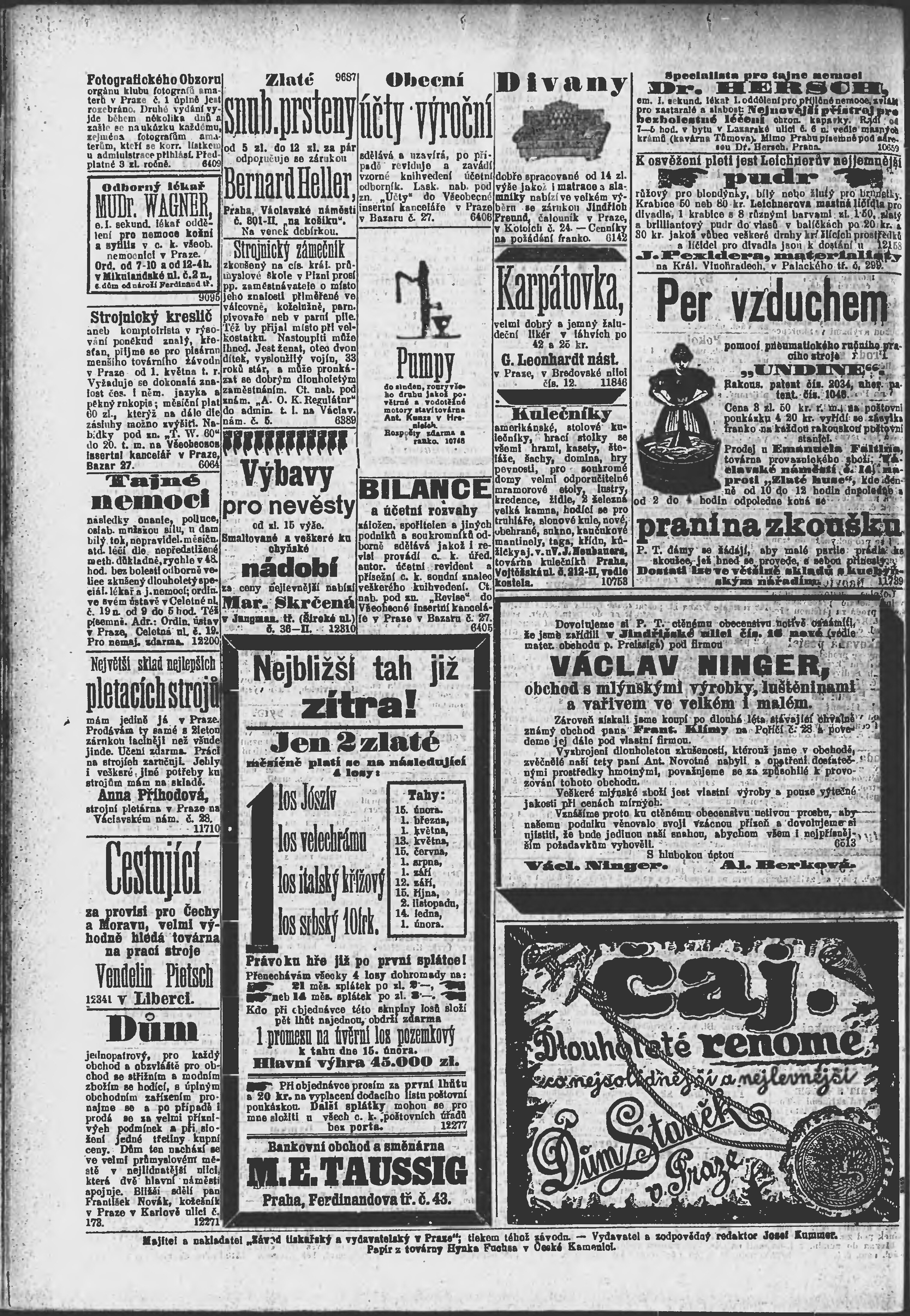 * Datum vydání výtisku: 14.2.1895 Číslo výtisku: 45 Poznámky k výtisku: ranní vydání;