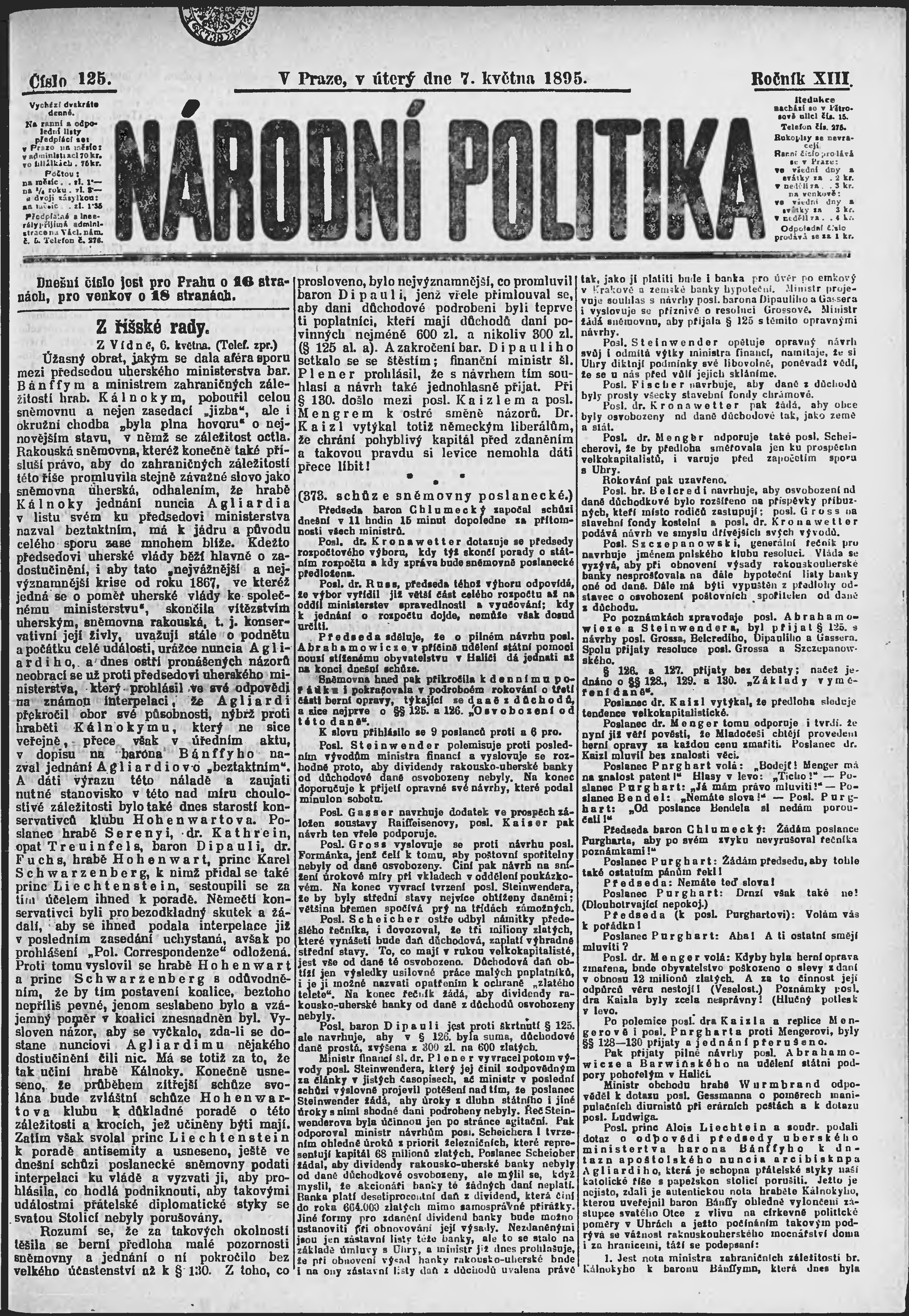 * Datum vydání výtisku: 7.5.1895 Číslo výtisku: 125 Poznámky k výtisku: ranní vydání;