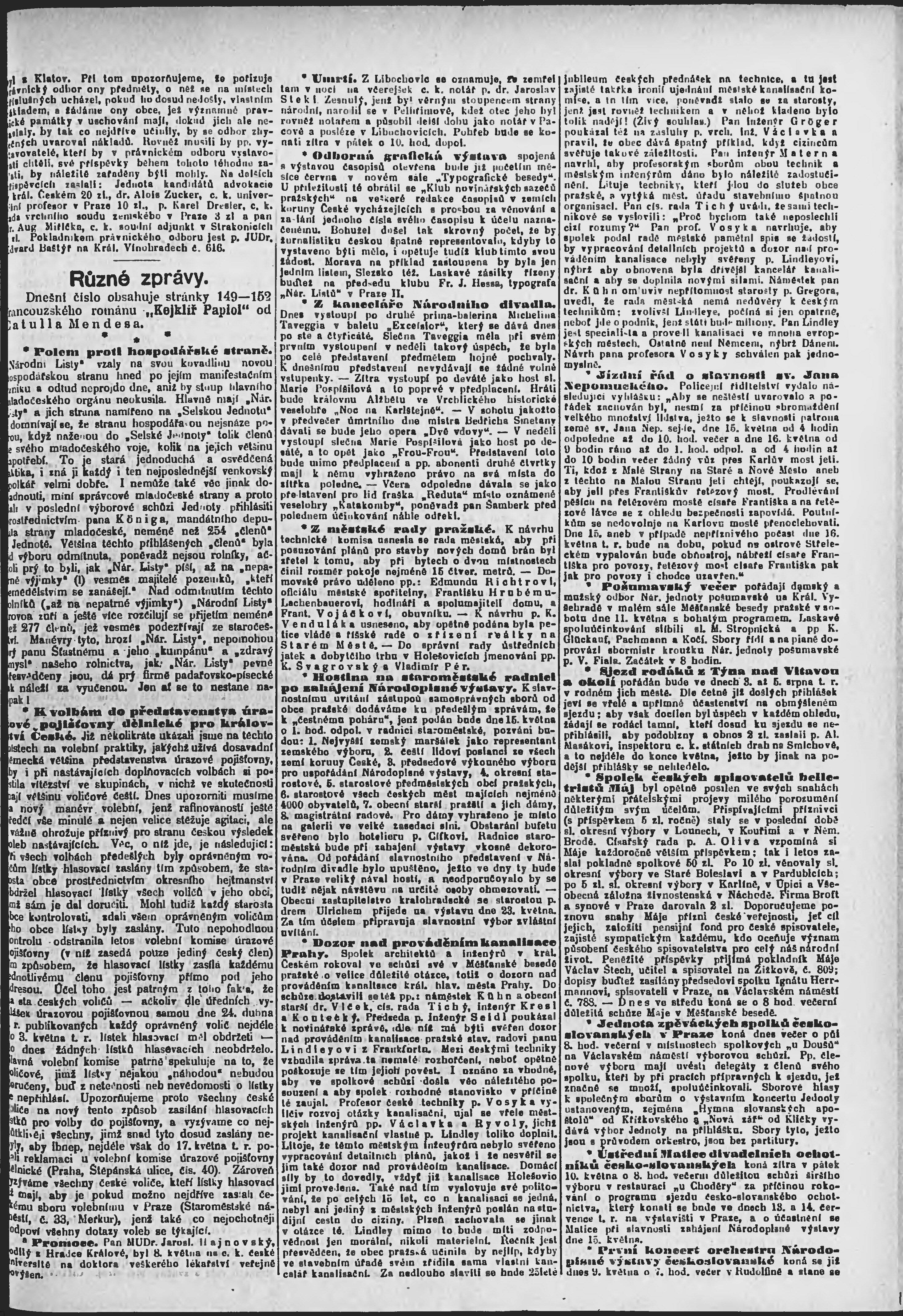 * Datum vydání výtisku: 9.5.1895 Číslo výtisku: 127 Poznámky k výtisku: ranní vydání;
