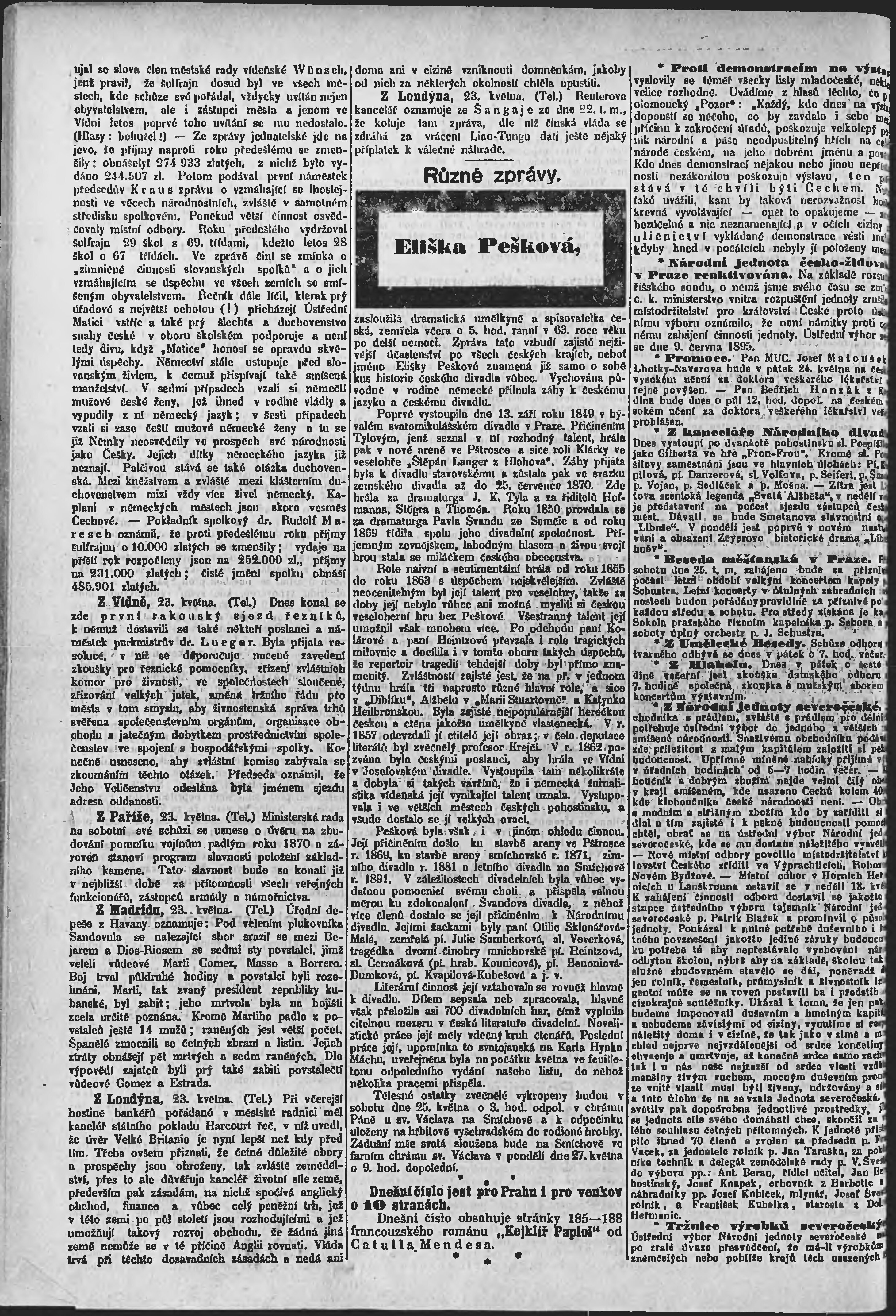 * Datum vydání výtisku: 24.5.1895 Číslo výtisku: 142 Poznámky k výtisku: ranní vydání;