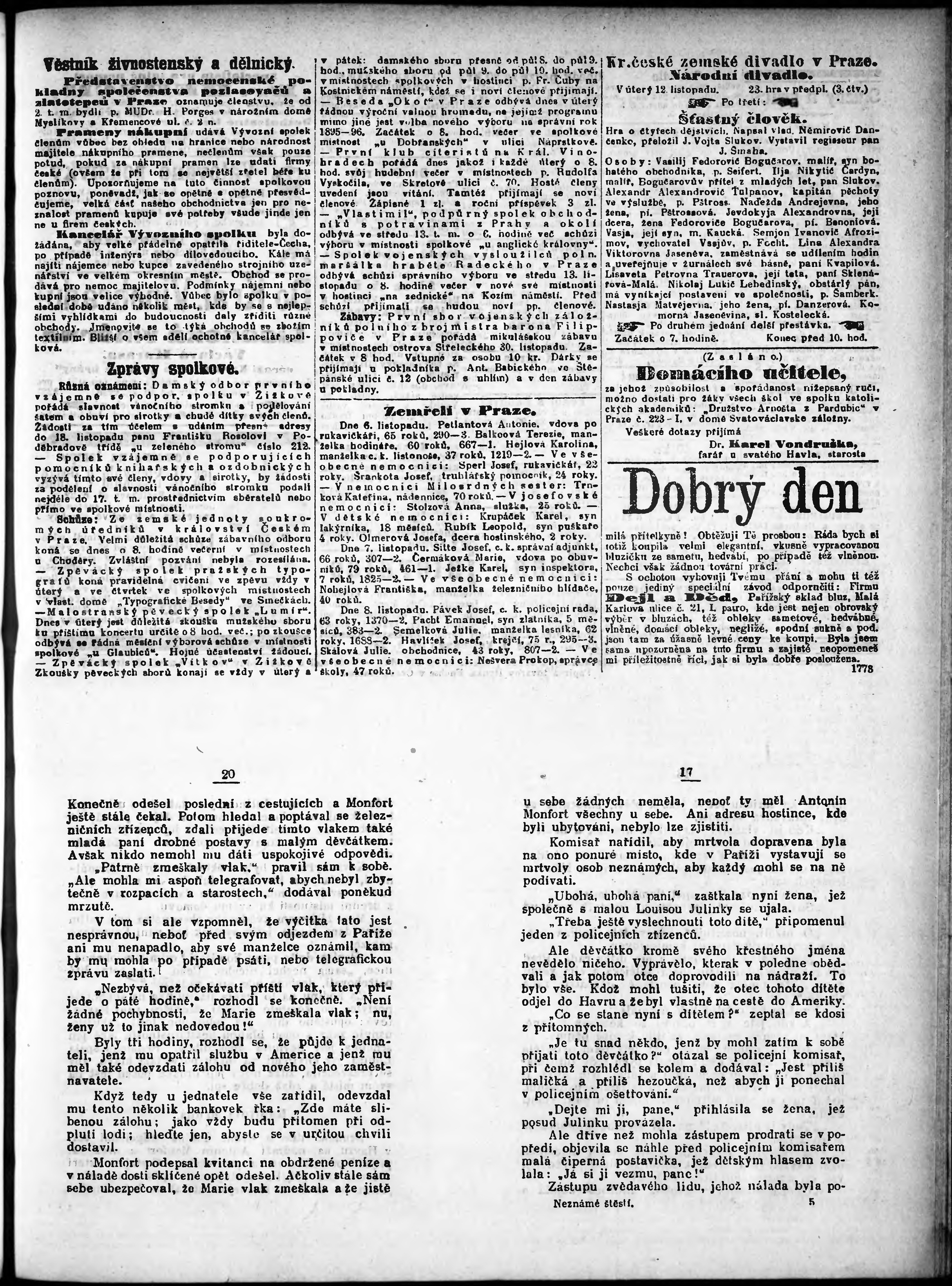 * Datum vydání výtisku: 12.11.1895 Číslo výtisku: 313 Poznámky k výtisku: odpolední vydání;