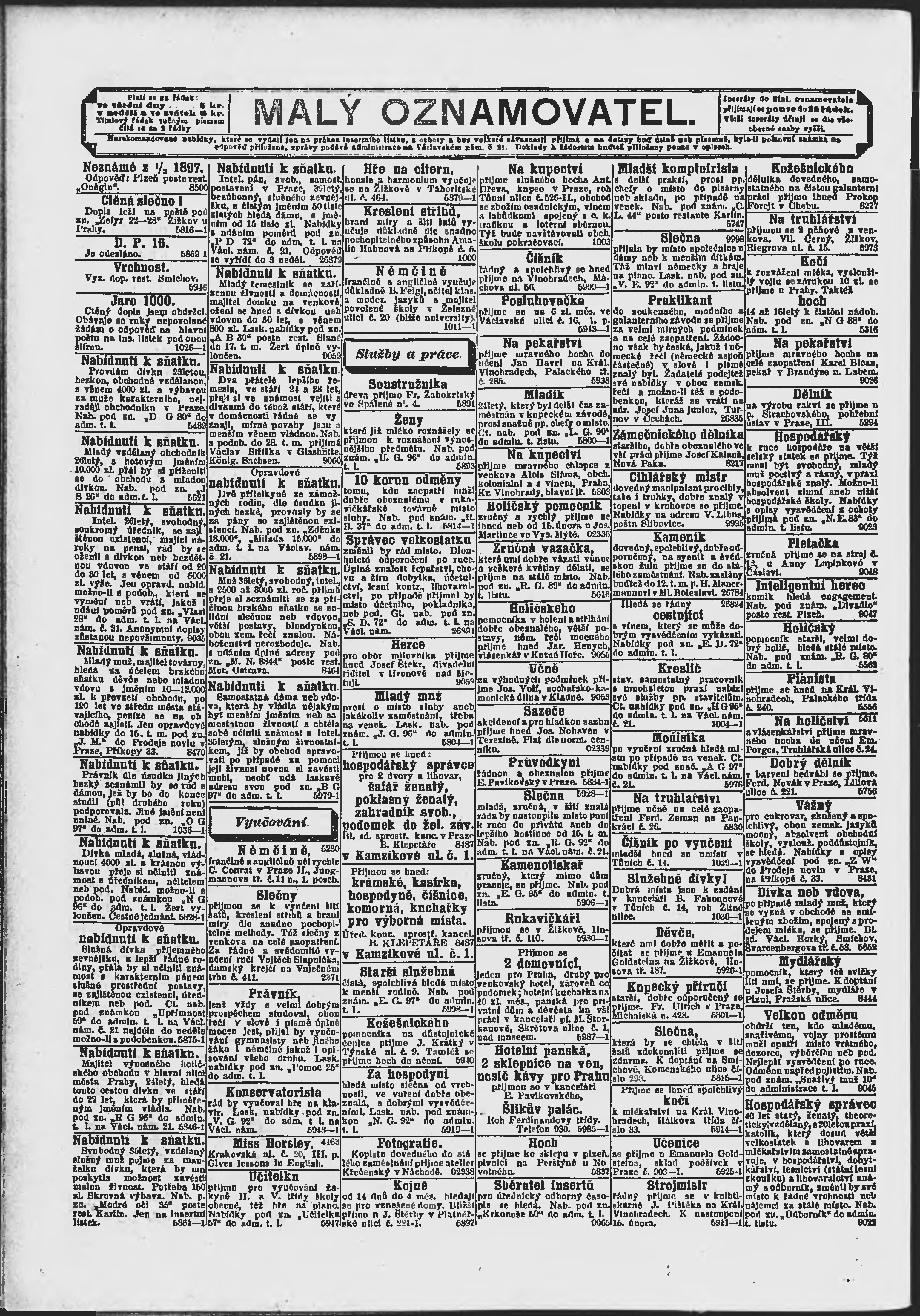 * Datum vydání výtisku: 12.2.1897 Číslo výtisku: 43 Poznámky k výtisku: ranní vydání;