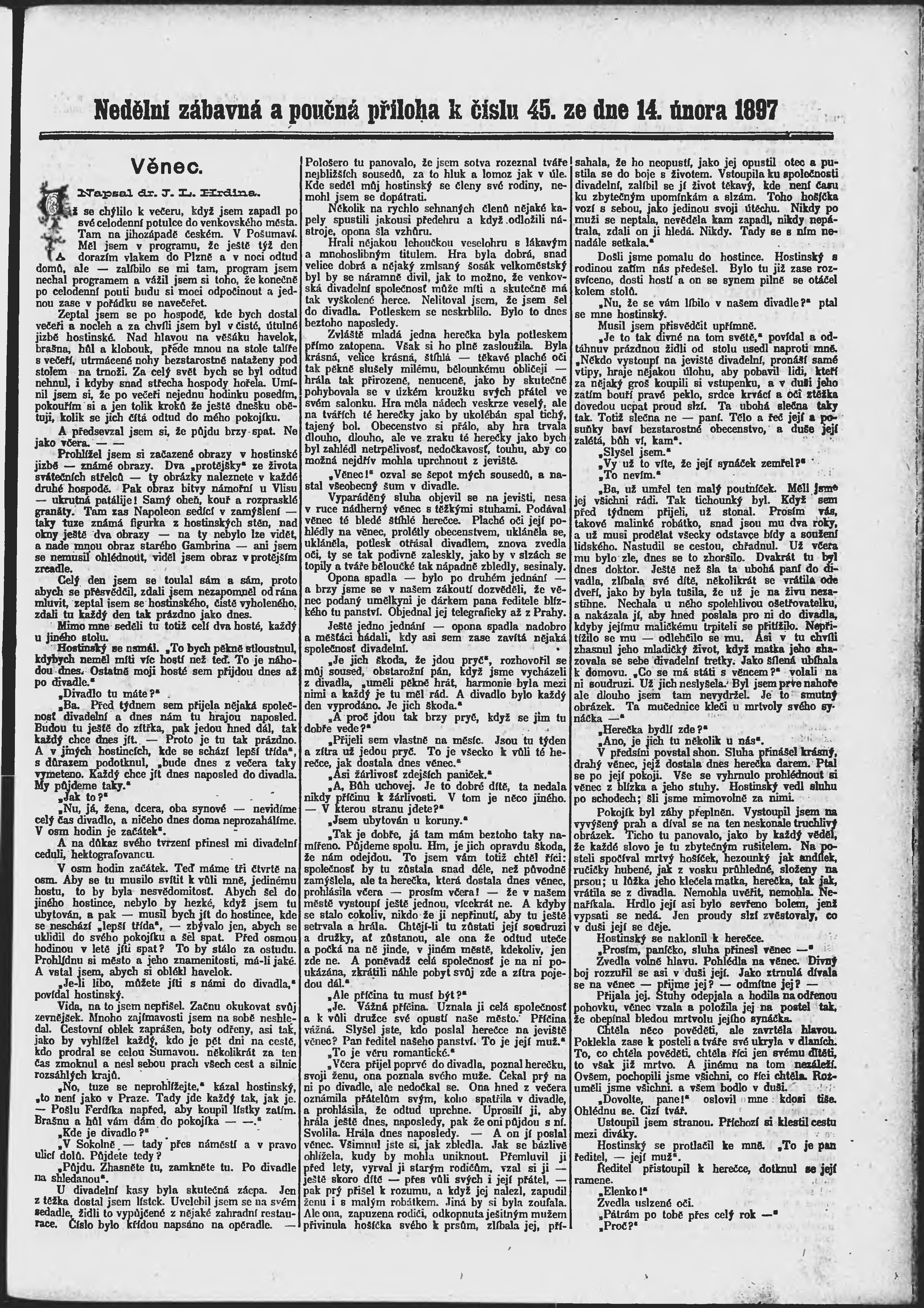 * Datum vydání výtisku: 14.2.1897 Číslo výtisku: 45 Poznámky k výtisku: ranní vydání;