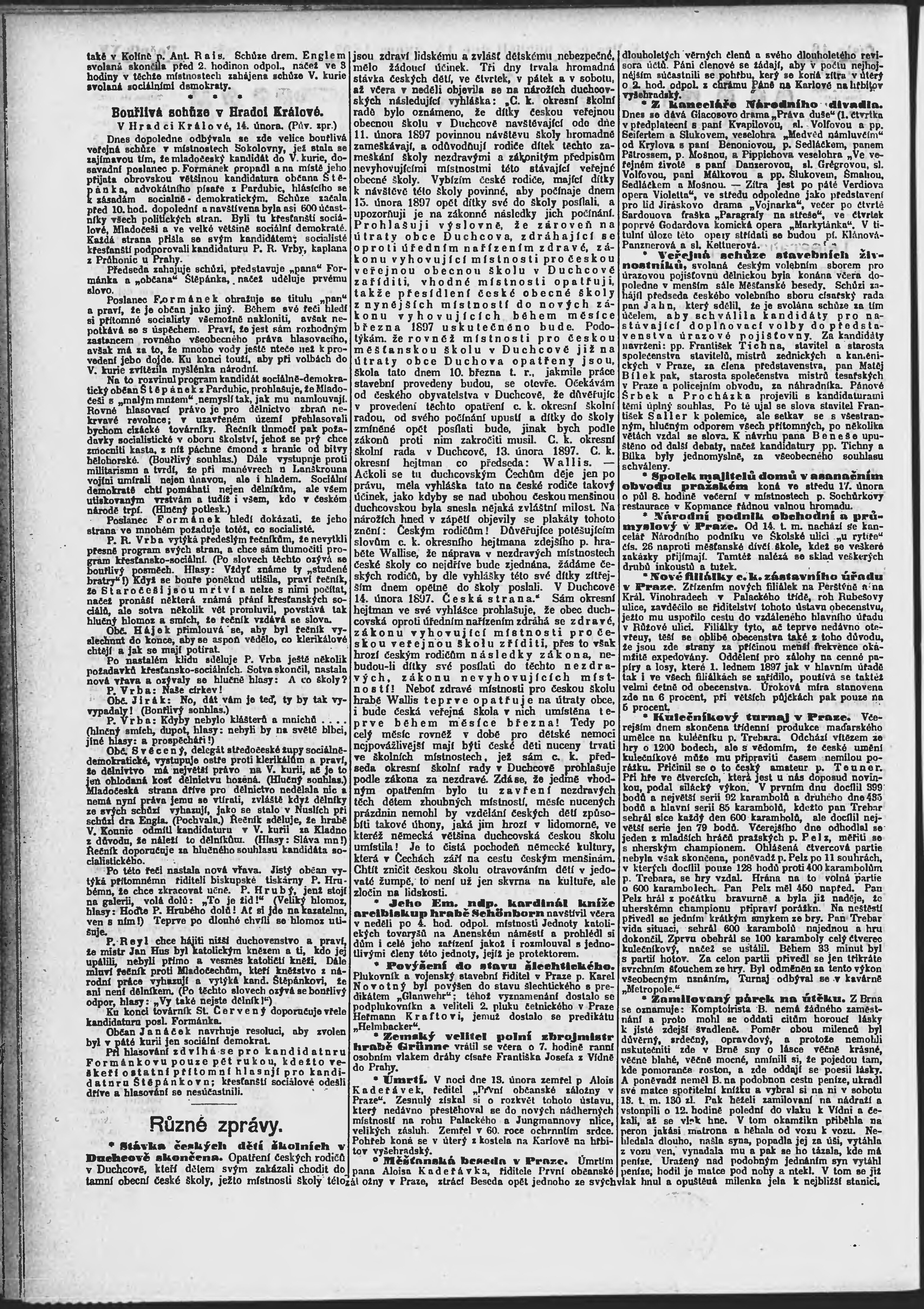 * Datum vydání výtisku: 15.2.1897 Číslo výtisku: 46 Poznámky k výtisku: ranní vydání;