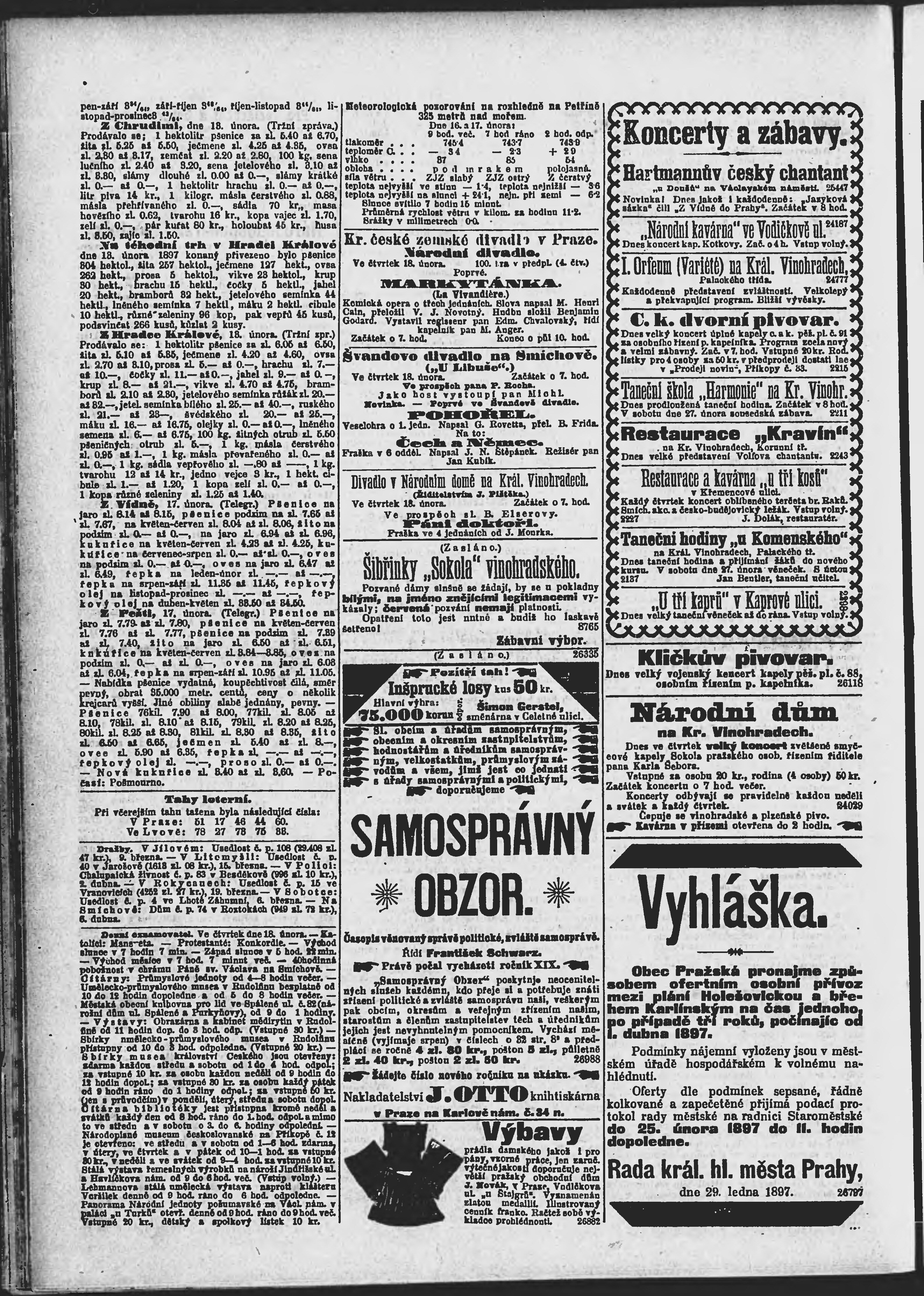 * Datum vydání výtisku: 18.2.1897 Číslo výtisku: 49 Poznámky k výtisku: ranní vydání;