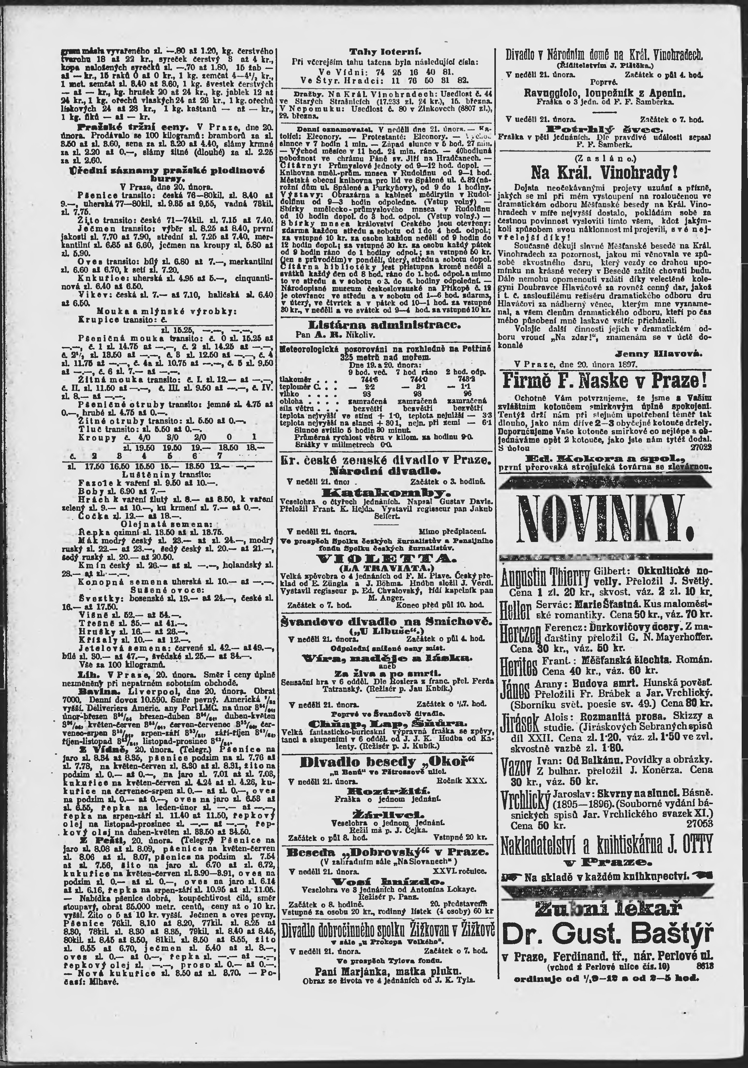 * Datum vydání výtisku: 21.2.1897 Číslo výtisku: 52 Poznámky k výtisku: ranní vydání;