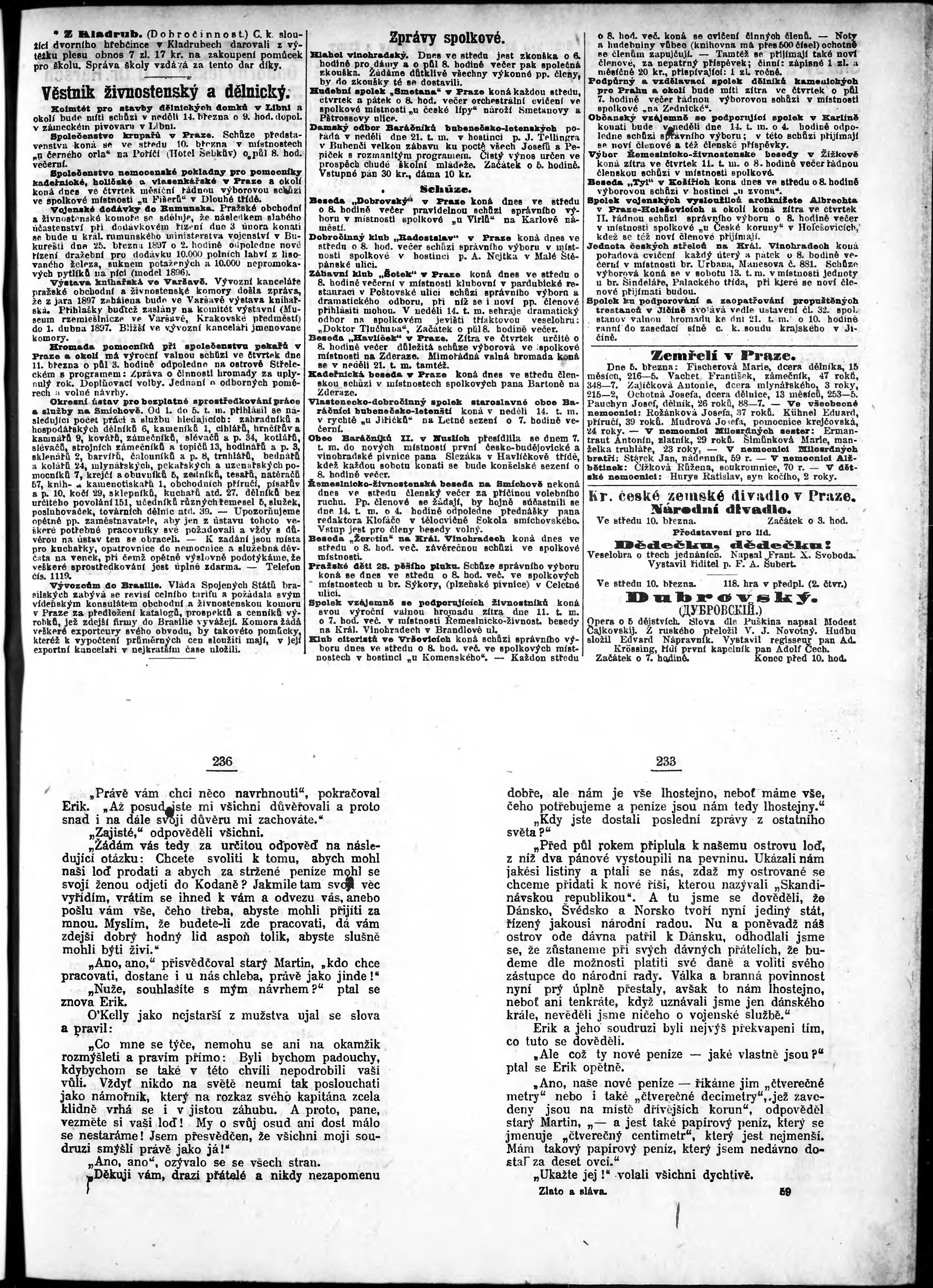 * Datum vydání výtisku: 10.3.1897 Číslo výtisku: 69 Poznámky k výtisku: odpolední vydání;