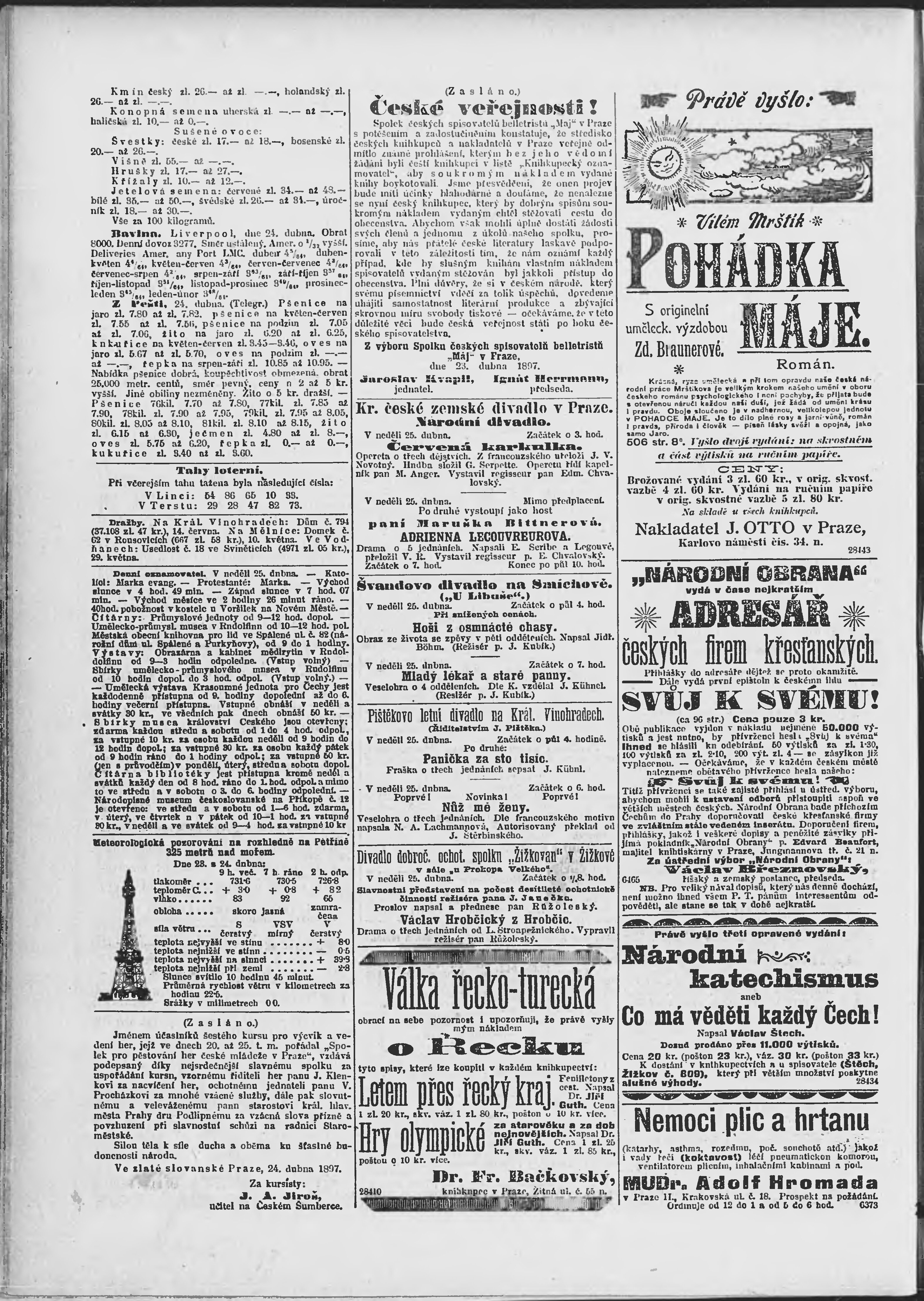 * Datum vydání výtisku: 25.4.1897 Číslo výtisku: 114 Poznámky k výtisku: ranní vydání;