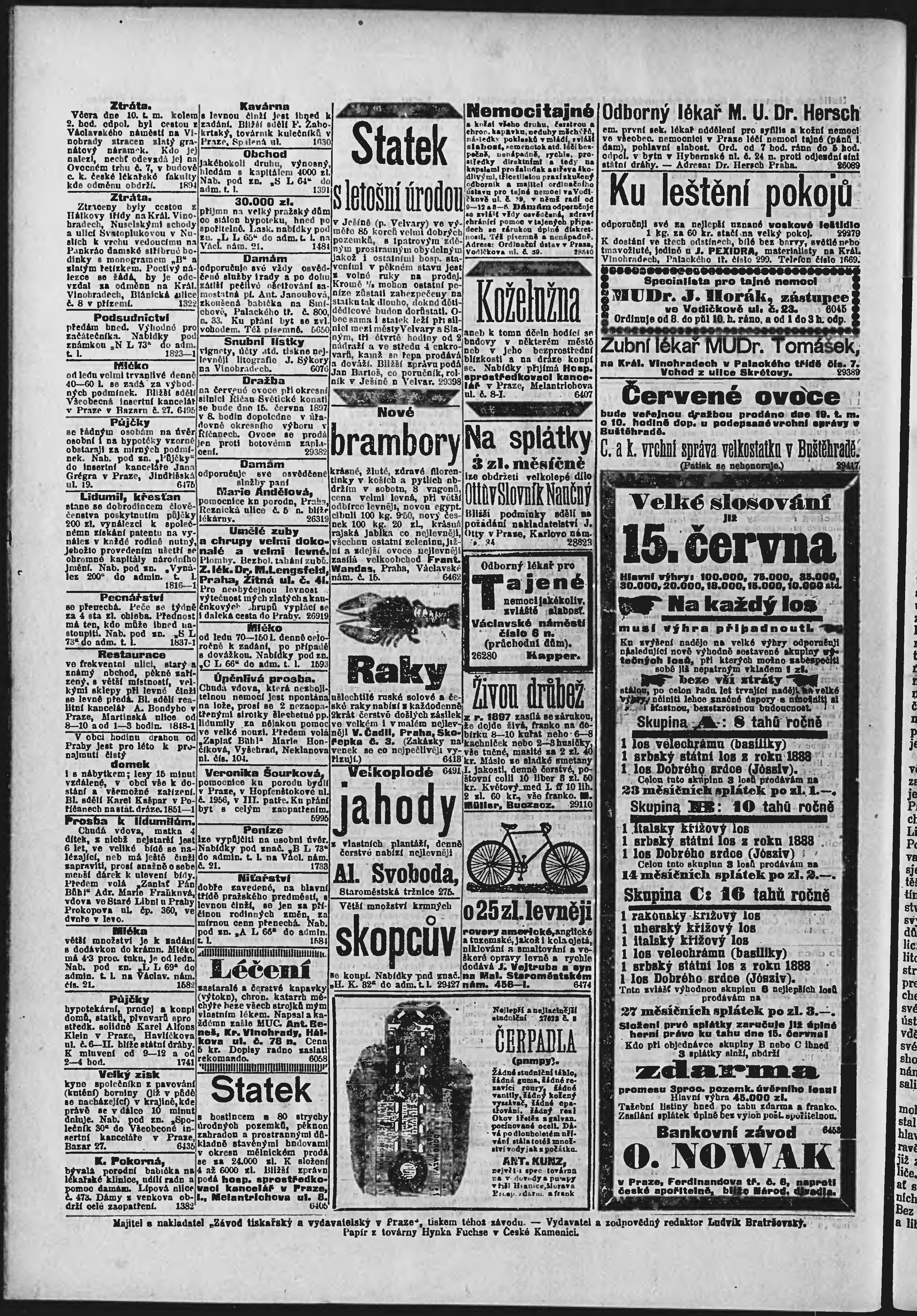 * Datum vydání výtisku: 11.6.1897 Číslo výtisku: 160 Poznámky k výtisku: ranní vydání;