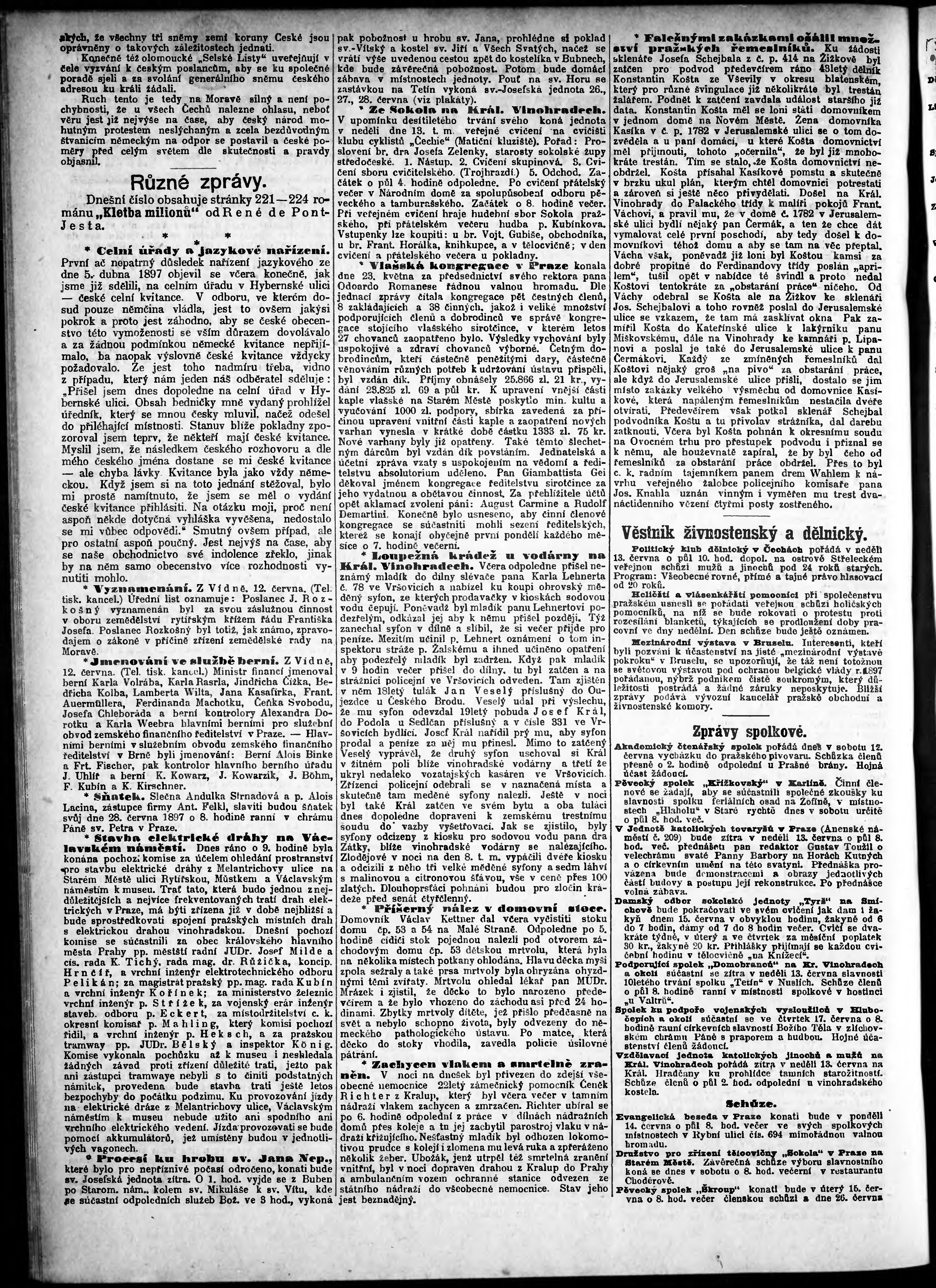 * Datum vydání výtisku: 12.6.1897 Číslo výtisku: 161 Poznámky k výtisku: odpolední vydání;