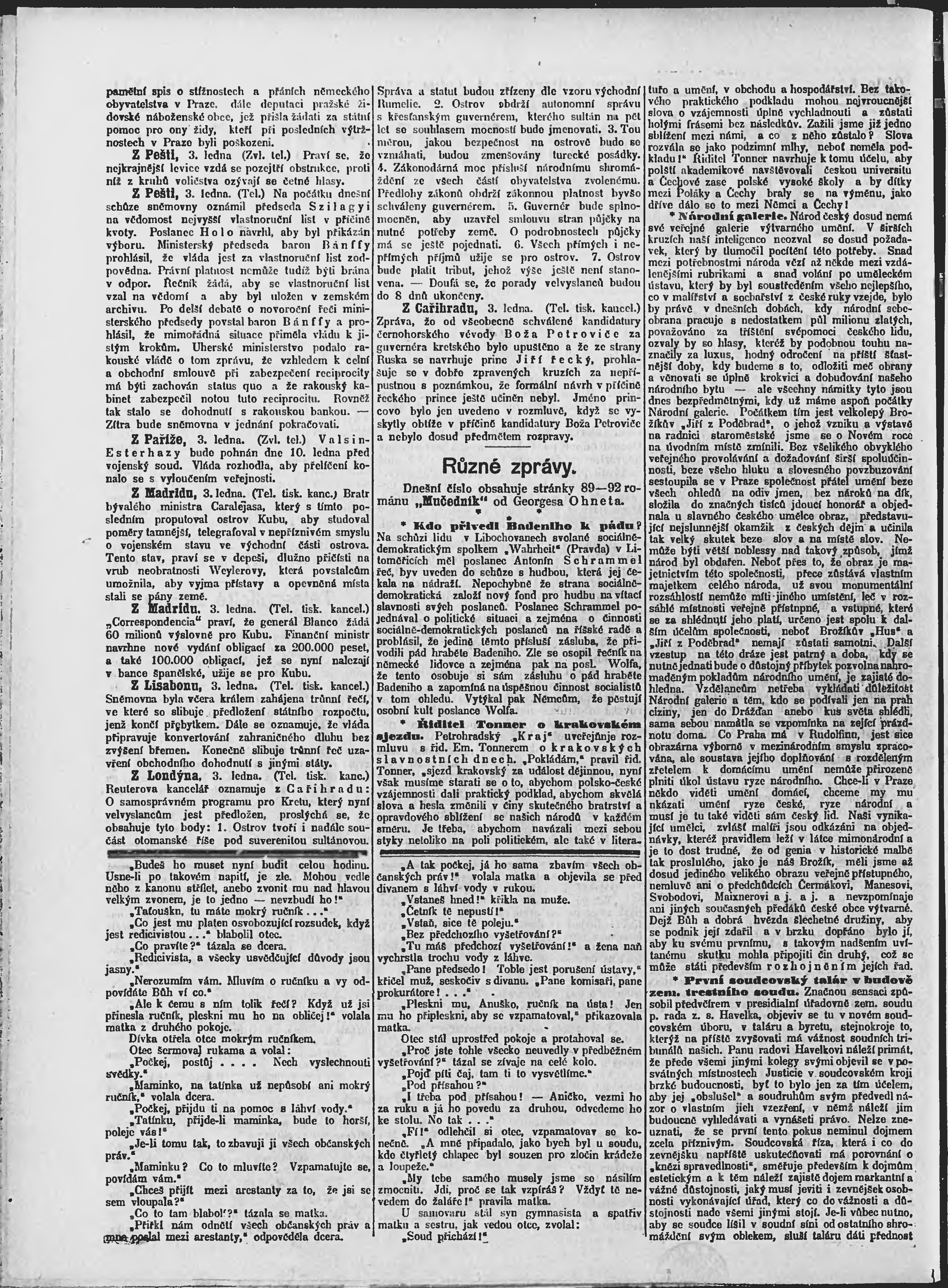 * Datum vydání výtisku: 4.1.1898 Číslo výtisku: 4 Poznámky k výtisku: ranní vydání;