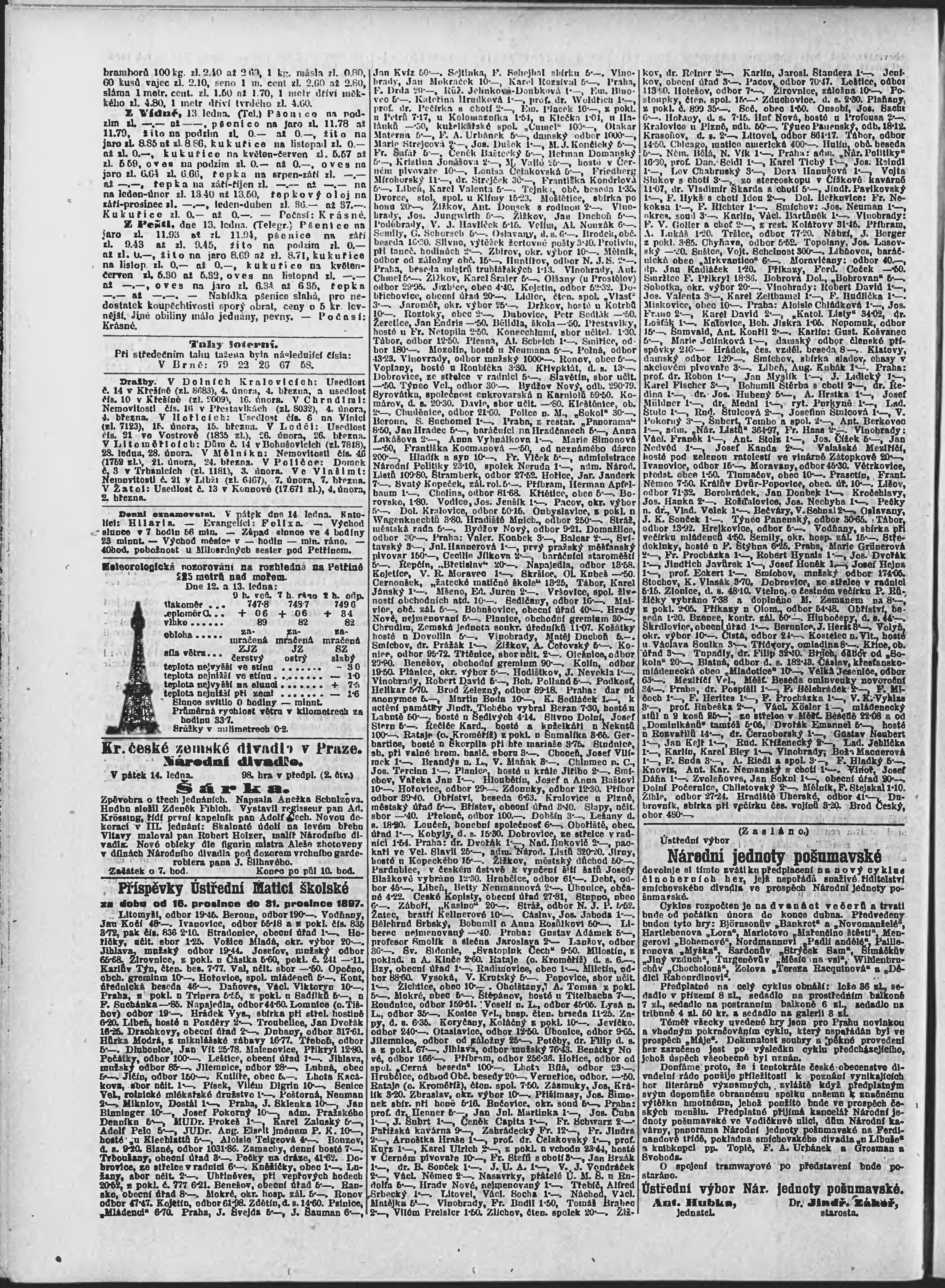 * Datum vydání výtisku: 14.1.1898 Číslo výtisku: 14 Poznámky k výtisku: ranní vydání;