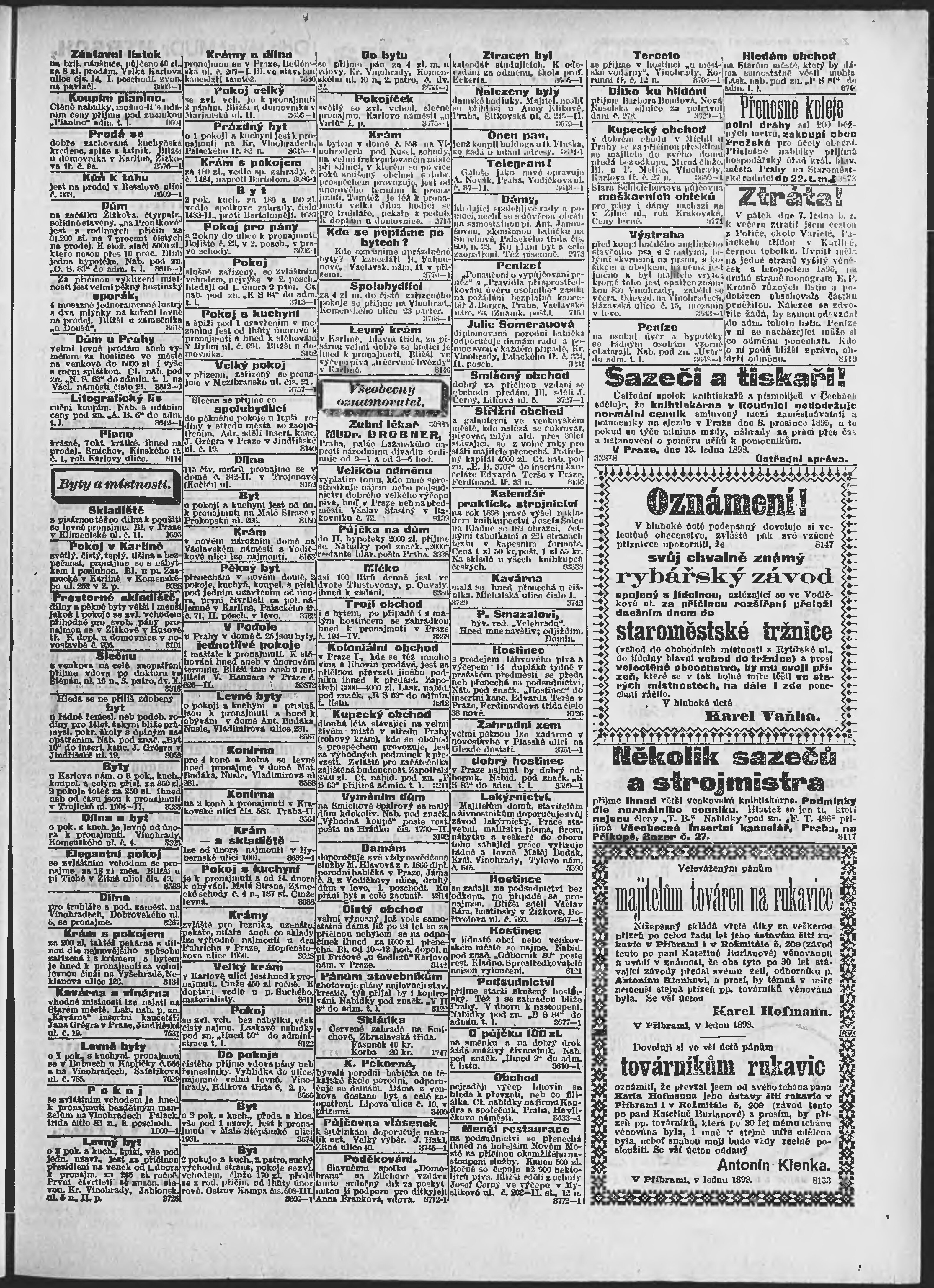 * Datum vydání výtisku: 14.1.1898 Číslo výtisku: 14 Poznámky k výtisku: ranní vydání;