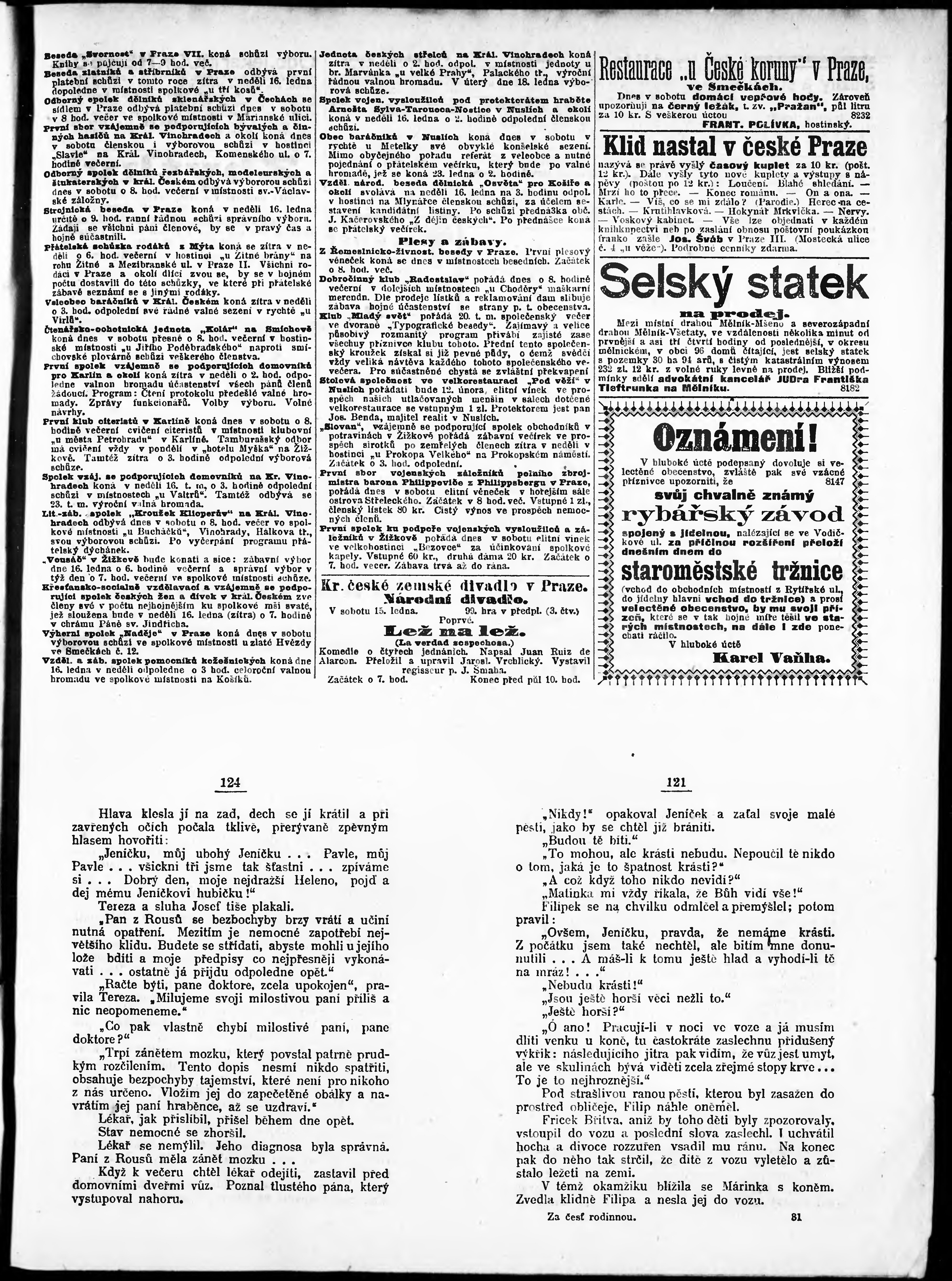 * Datum vydání výtisku: 15.1.1898 Číslo výtisku: 15 Poznámky k výtisku: odpolední vydání;
