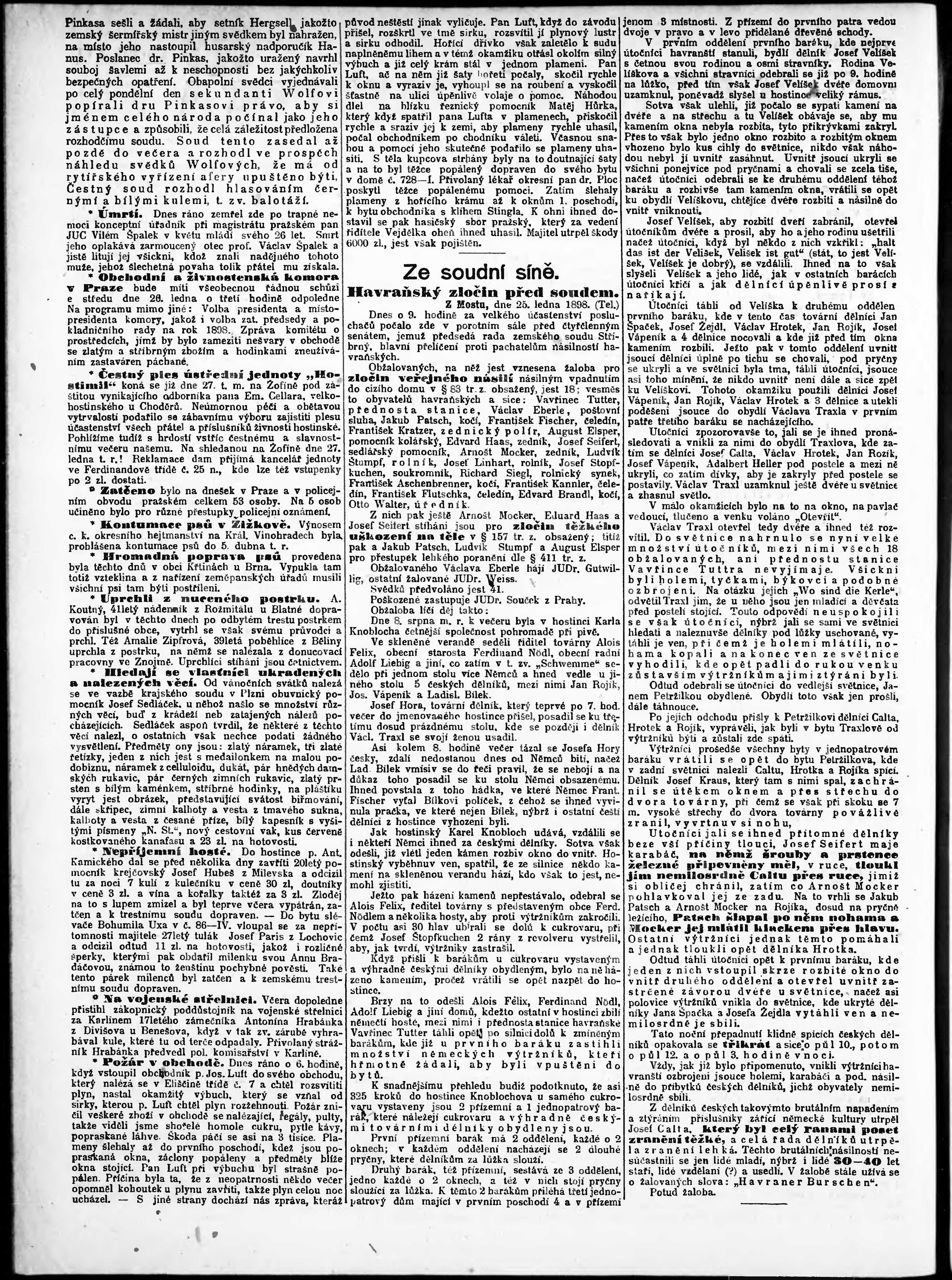 * Datum vydání výtisku: 25.1.1898 Číslo výtisku: 25 Poznámky k výtisku: odpolední vydání;