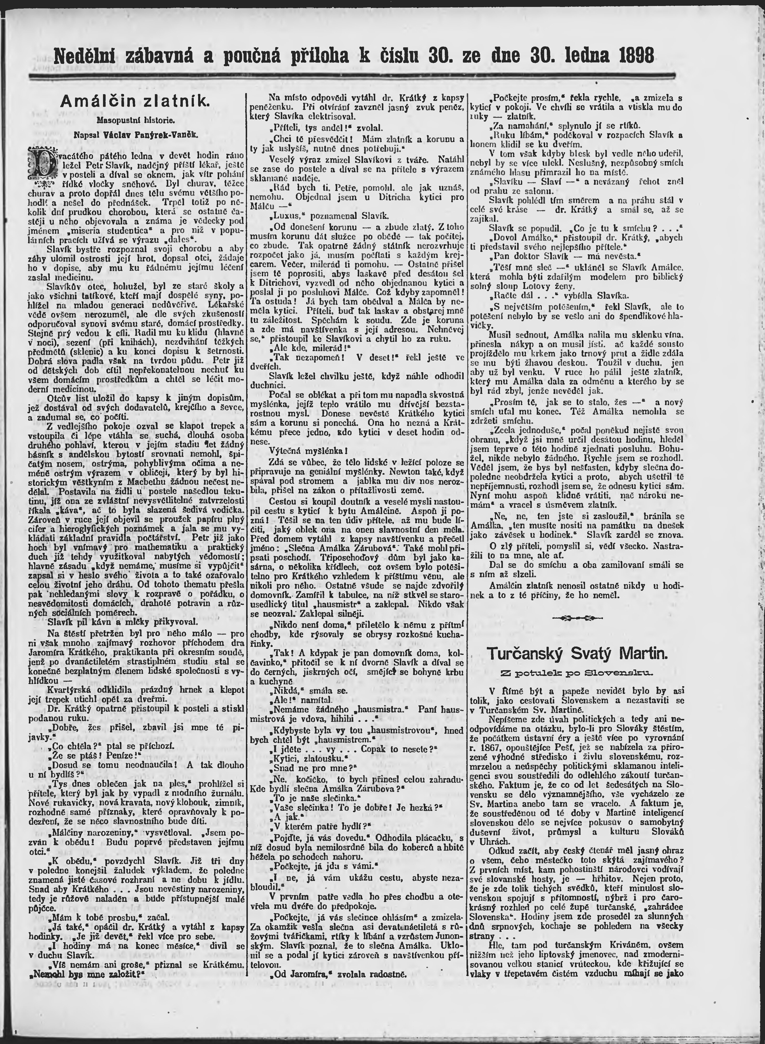 * Datum vydání výtisku: 30.1.1898 Číslo výtisku: 30 Poznámky k výtisku: ranní vydání;